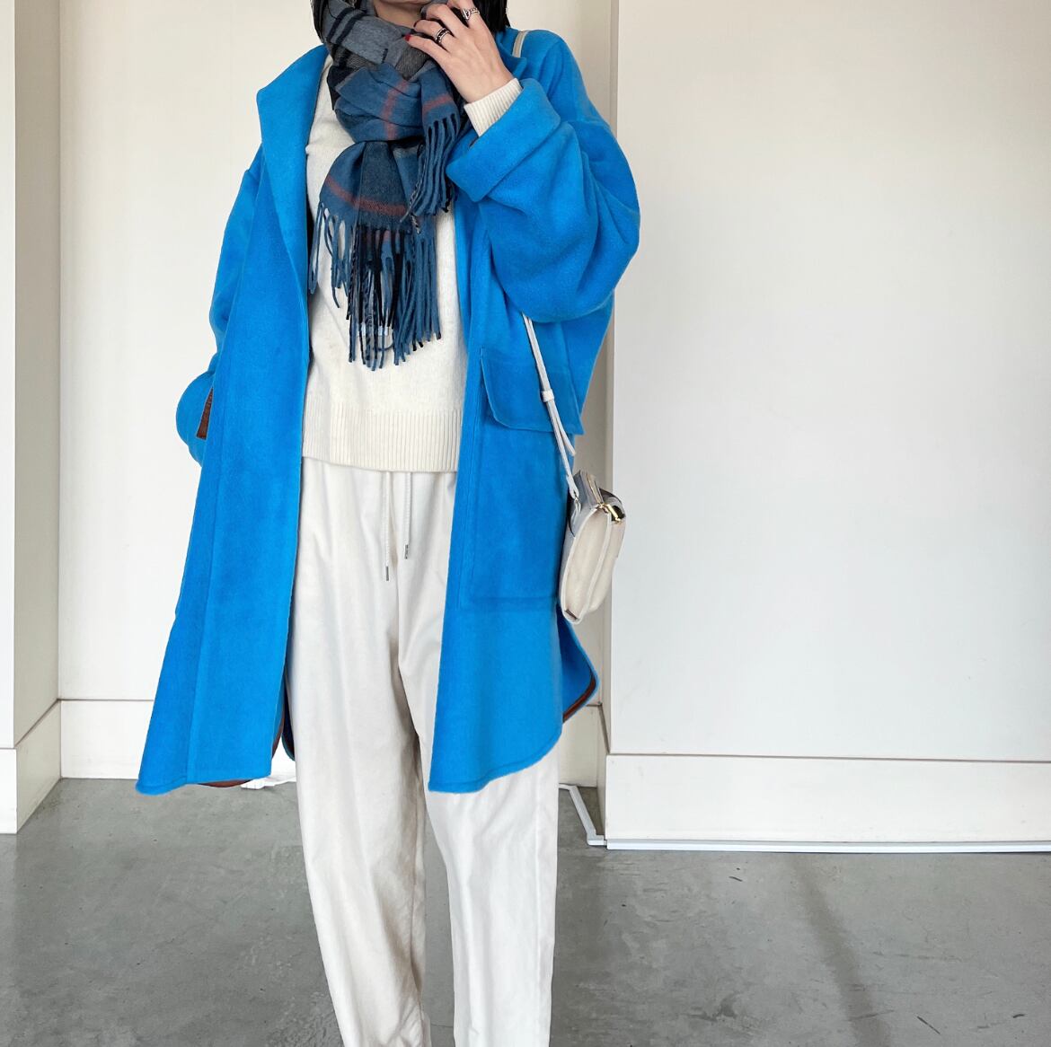 目を惹くブルーカラーが暗くなりがちな冬コーデを華やかに、デイリー使いにもお出かけにもぴったりな万能フリース コートです。