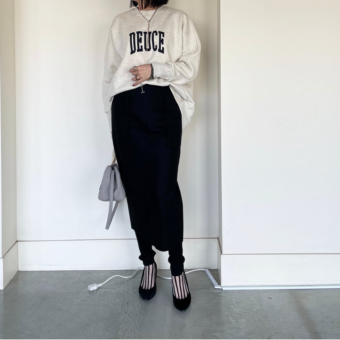 ボトムはすっきりパンツでカジュアル合わせはもちろん、今季トレンドのタイトスカートと合わせれば、オトナカジュアルな着こなしもOK!なオススメロゴスウェットトップスです。