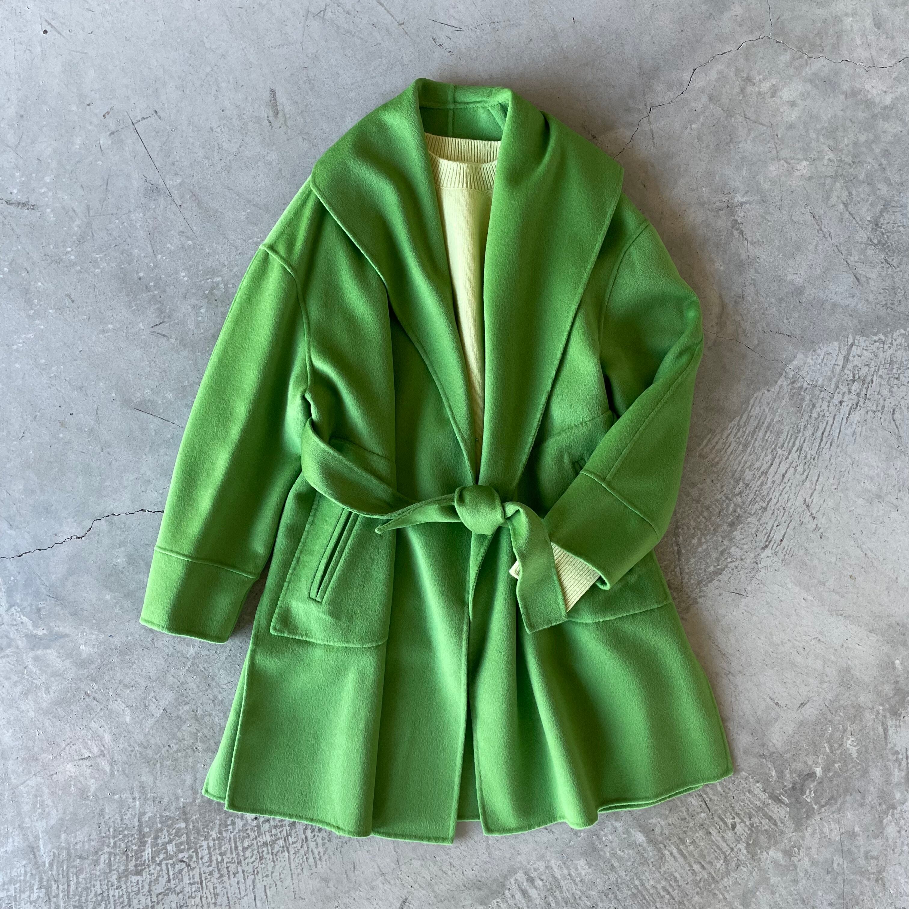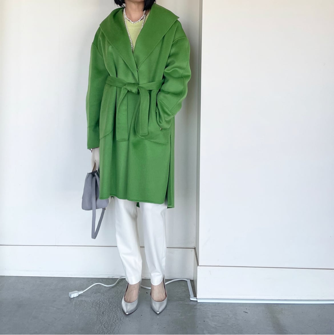 鮮やか"Green"で華やか冬コーデ♪ ショールカラー ダブルフェイスウールコートです。