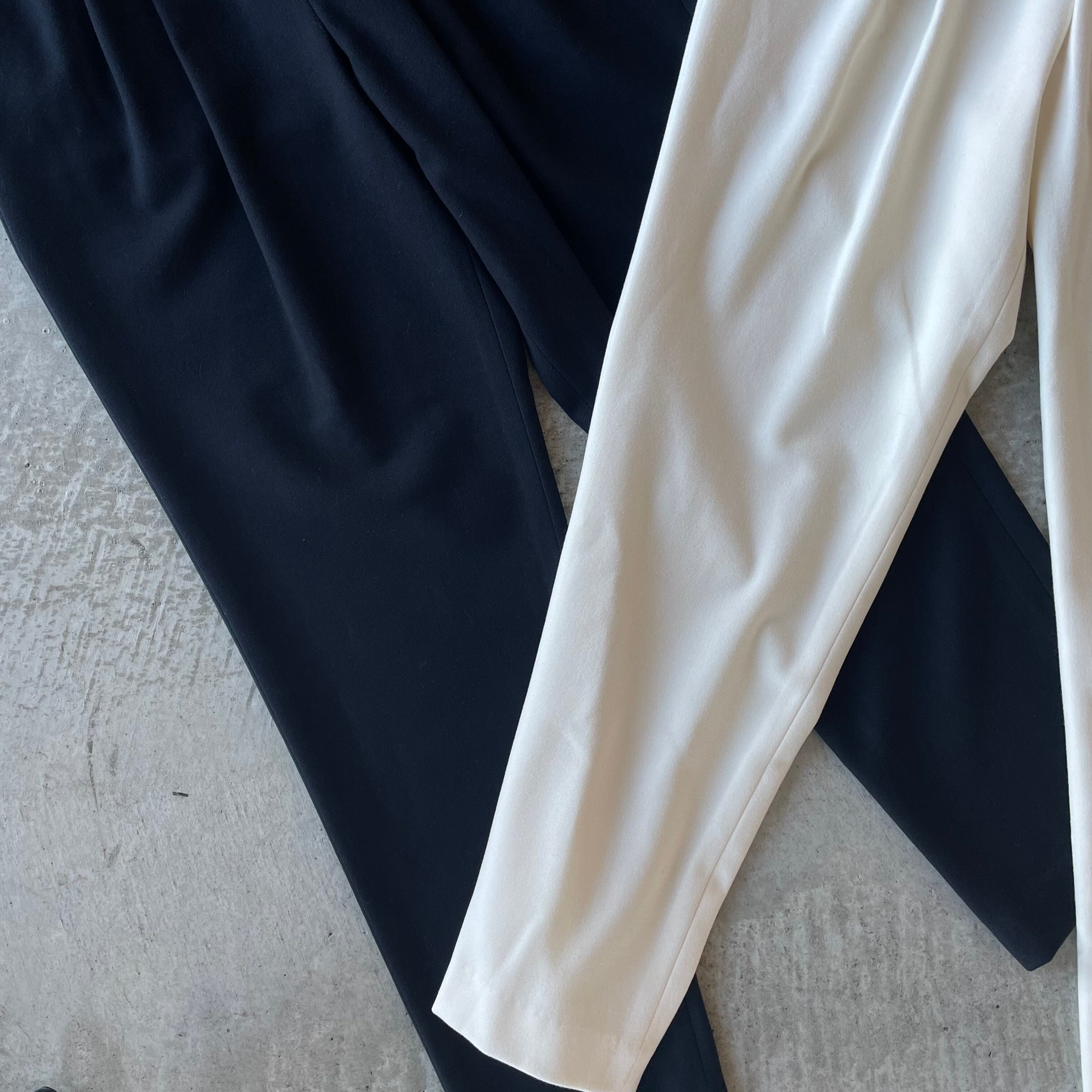 美脚効果とストレスフリーさを兼ね揃えた総ゴムイージーテーパードパンツ。