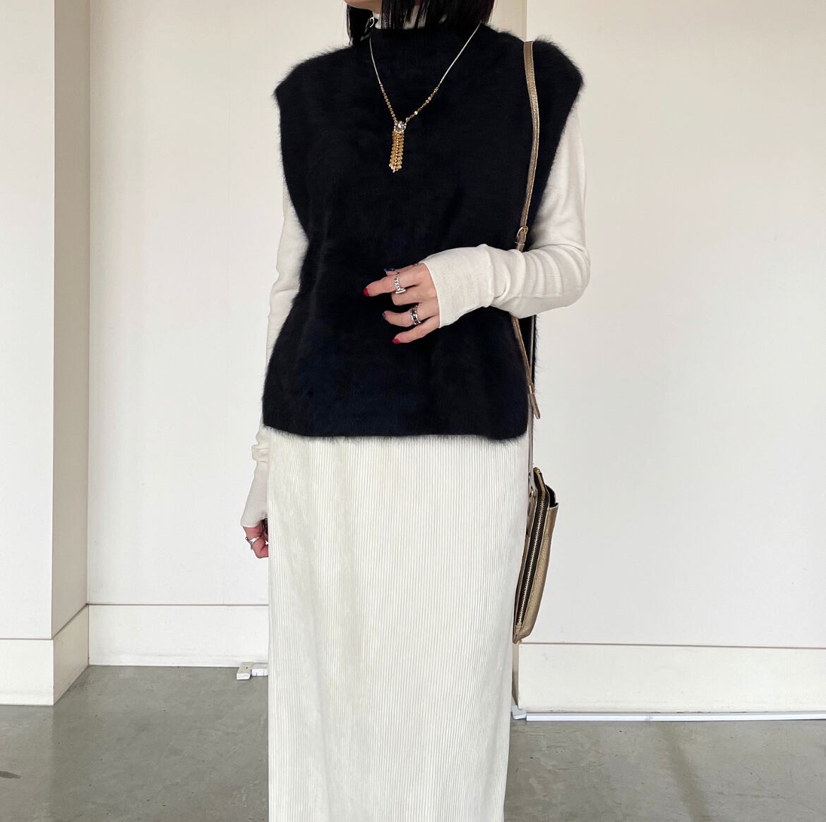 ふんわりとした柔らかい素材が人気のフォックスニット×上質カシミヤのニットベスト。