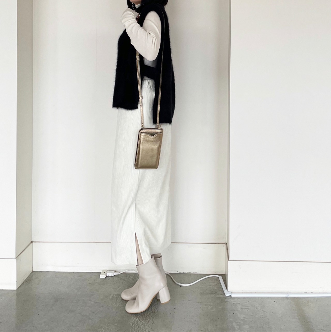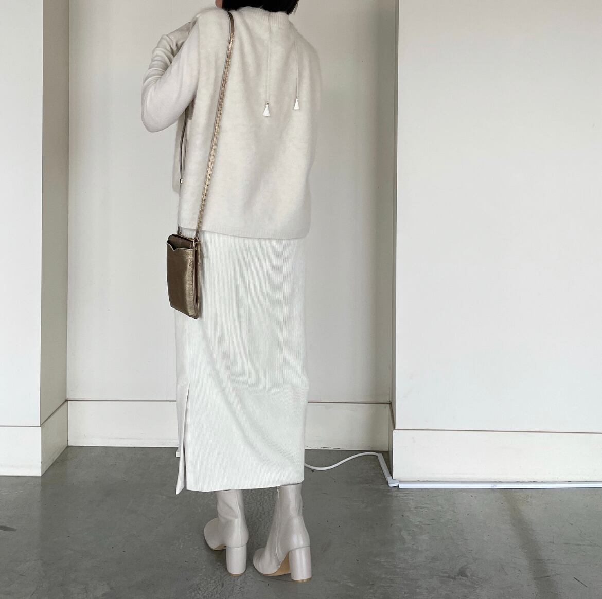 ブーツともバランス良く楽しめる丈感は、幅広く足元のお洒落もお楽しみ頂けるオススメタイトスカートです。