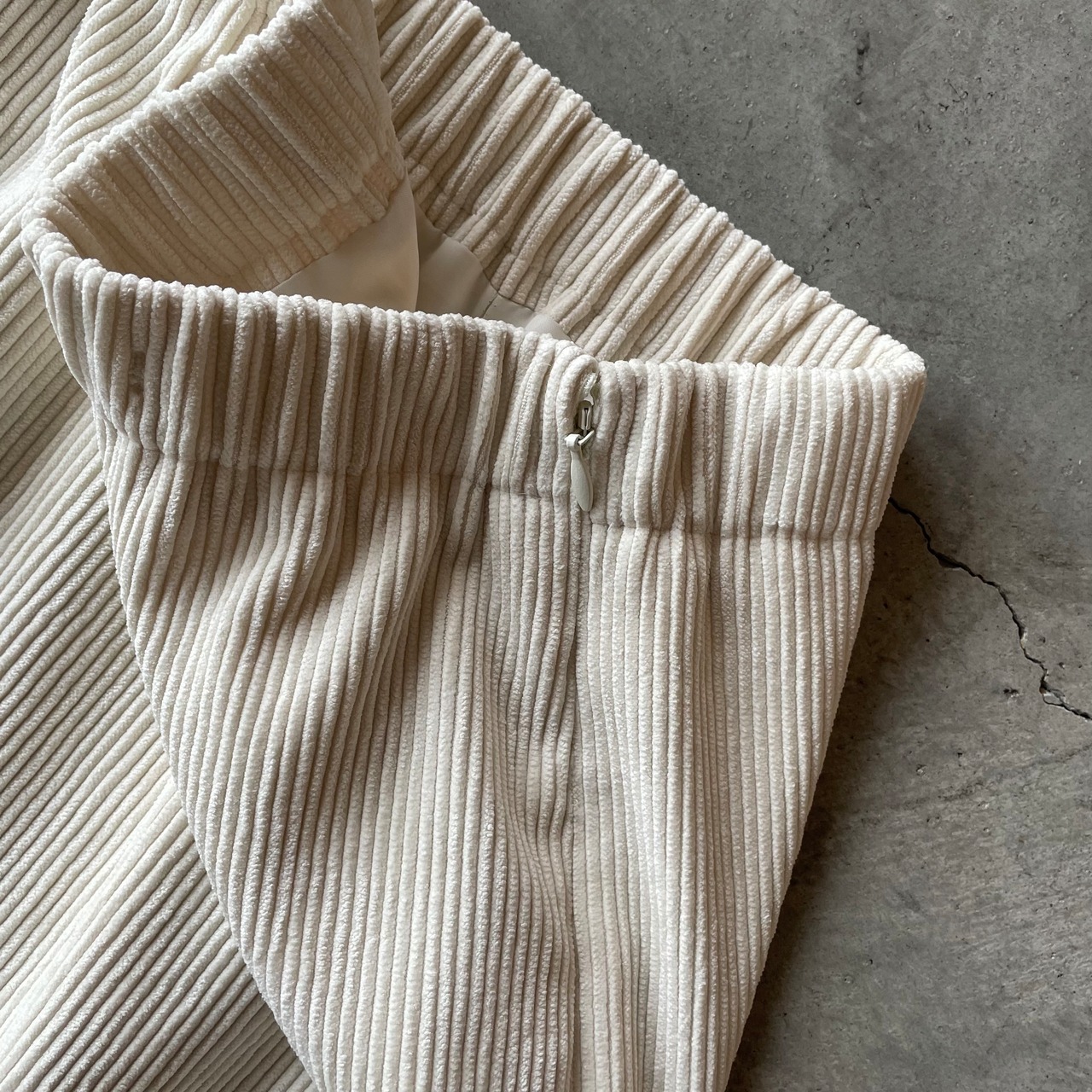 キレイ見えコーデュロイ 素材で、カジュアルになりがちなコーデュロイスカートもキレイめ見えに!