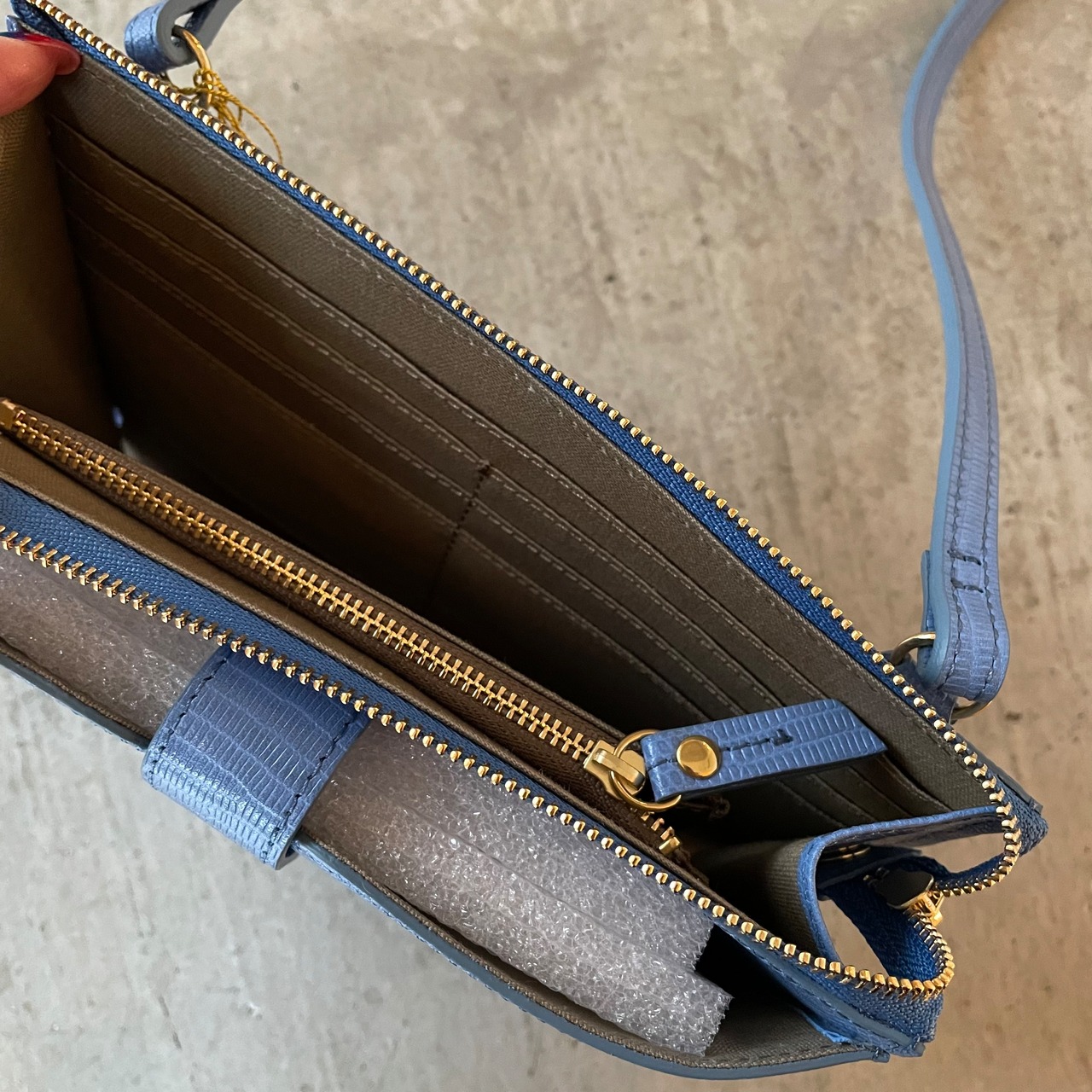 メイン収納には2つ折り財布が収納でき、鍵やリップなども収まるのでちょっとしたお出かけにぴったり♪
