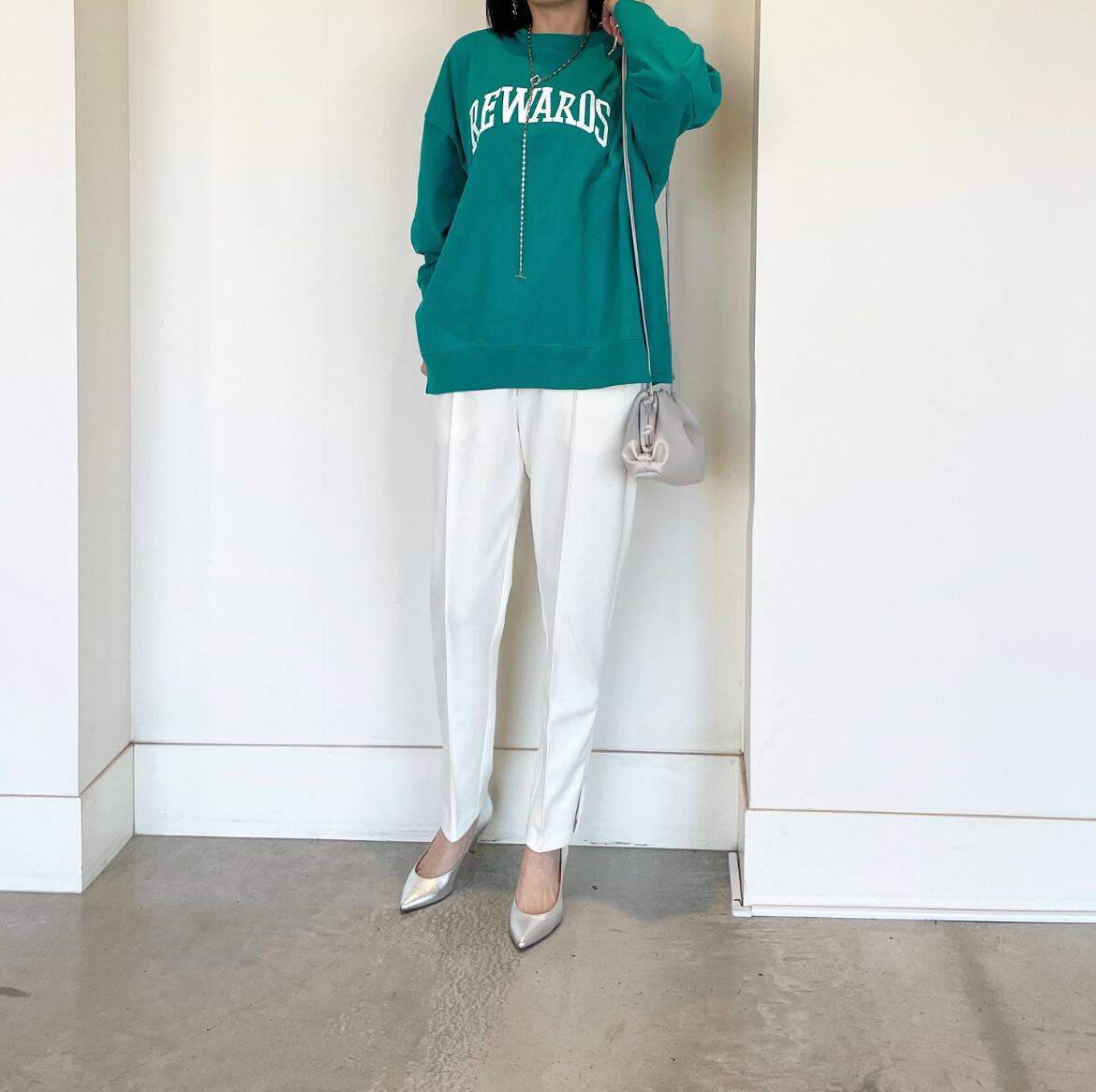 ゆるっとしたドロップショルダーが着心地も良く、カジュアルすぎないロゴプリントで大人の女性が着やすいバランスに仕上がっています♪