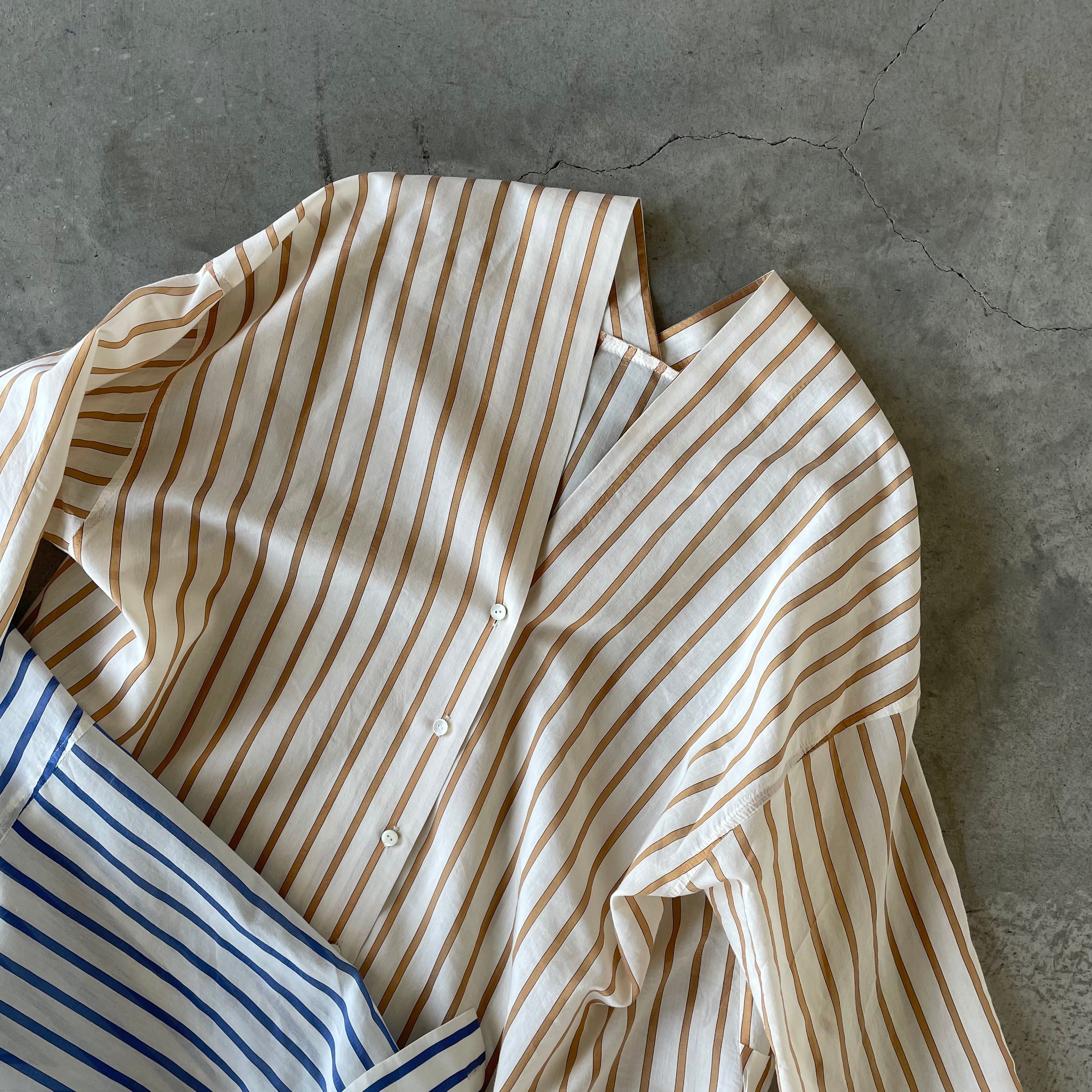 ストライプ柄でスタイリッシュに!サイドタックデザインがスタイリングを華やかにしてくれる♪ ストライプVネックブラウスです。