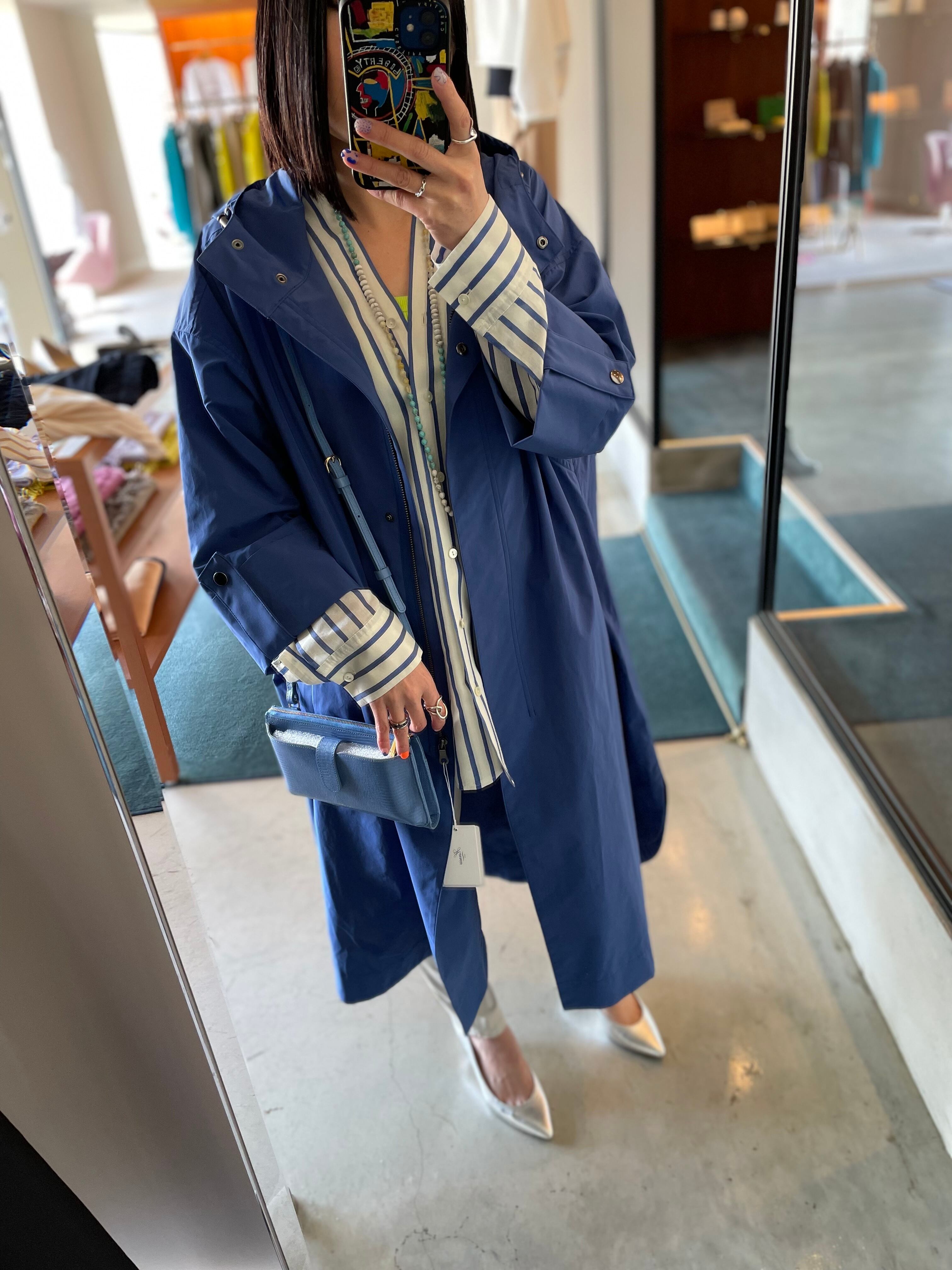 発色のいいブルーカラーが目を惹き、日々のお洒落を格上げしてくれる♪スプリングコート。