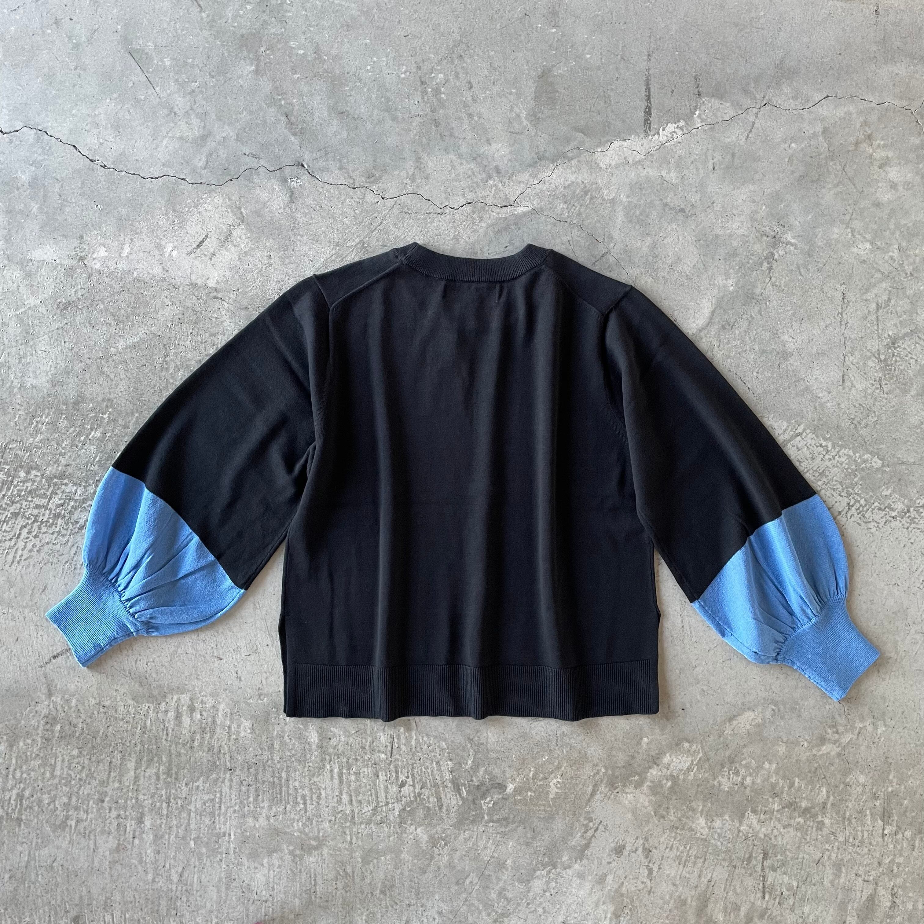 お袖の"バイカラー"がアクセントに♪ ボリュームスリーブバイカラープルオーバーニットです。