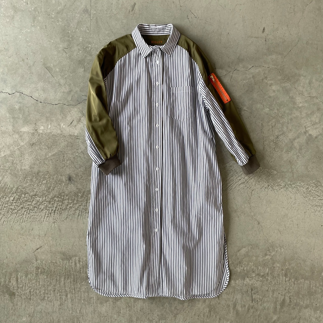 "RISLEY"では定番のミリタリーアイテムを袖に落とし込んだロングシャツワンピ。