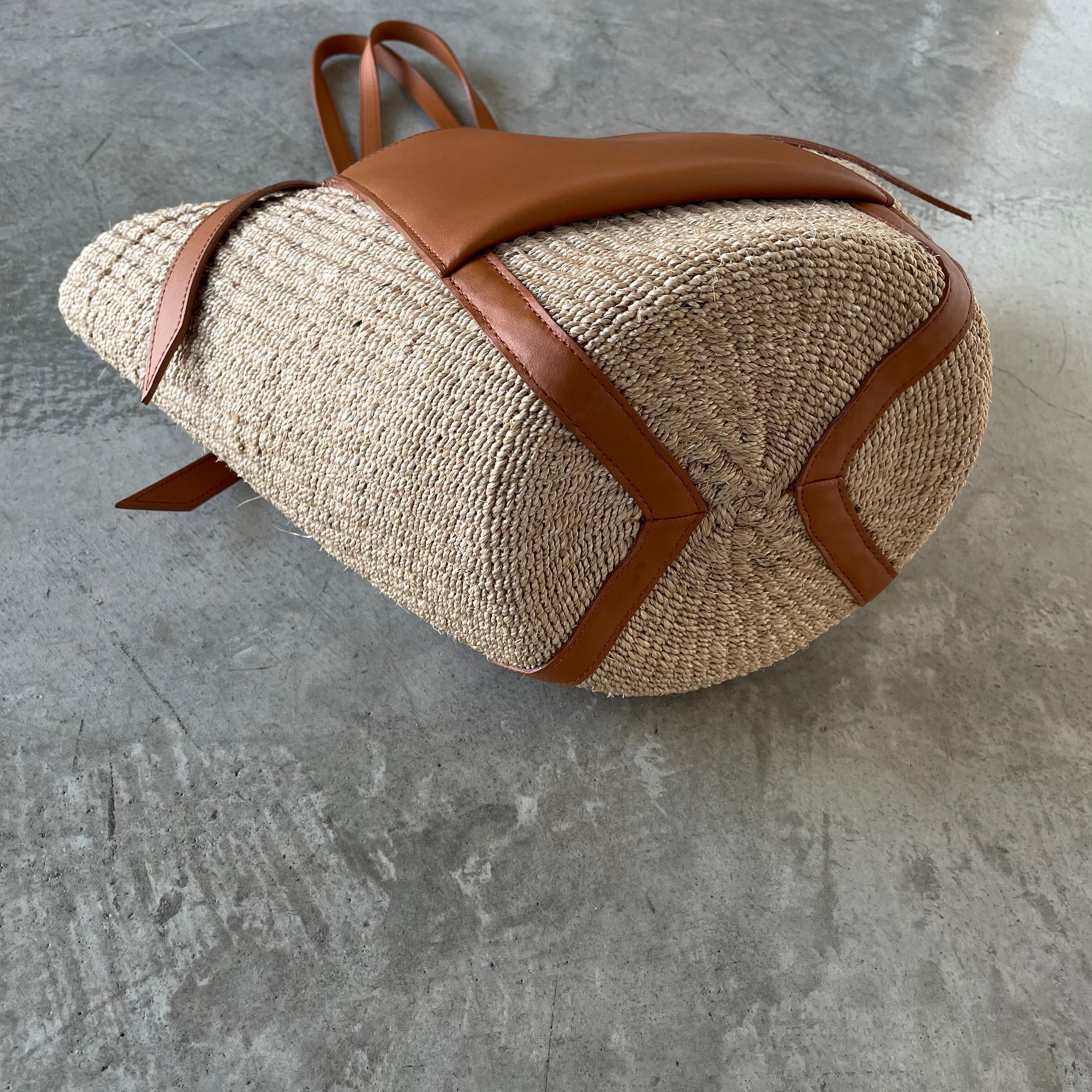 舟形のアバカボディにレザーがポイントになったトートバッグ。