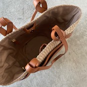 大きめサイズでお仕事にも◎!アバカ製 レザーポケットトートカゴバッグです。