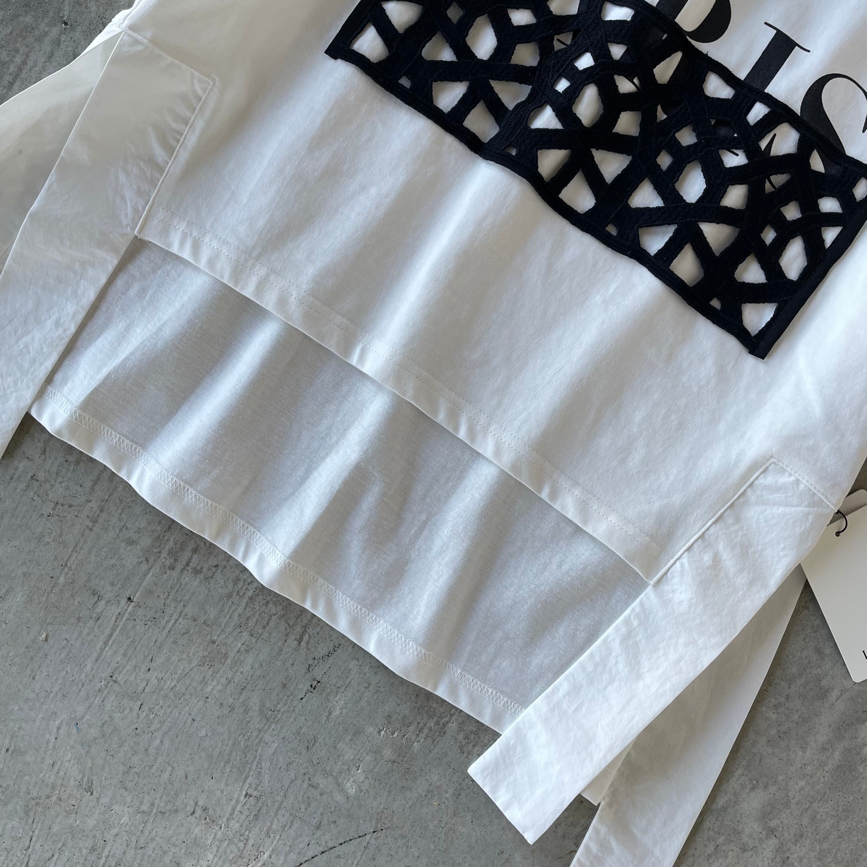 ロゴプリントに特注レースをドッキングしたデザインは一手間かけた大人な表情に。