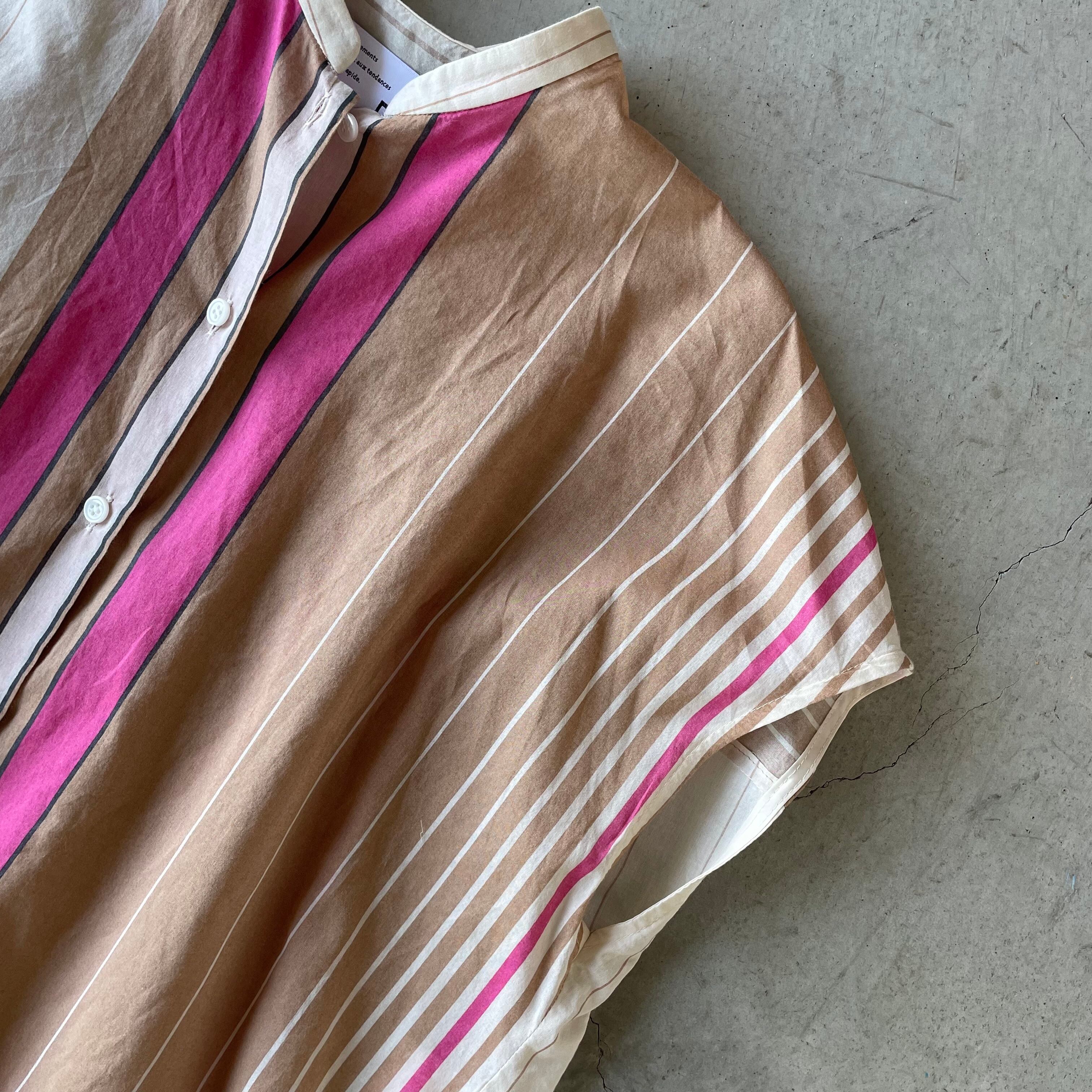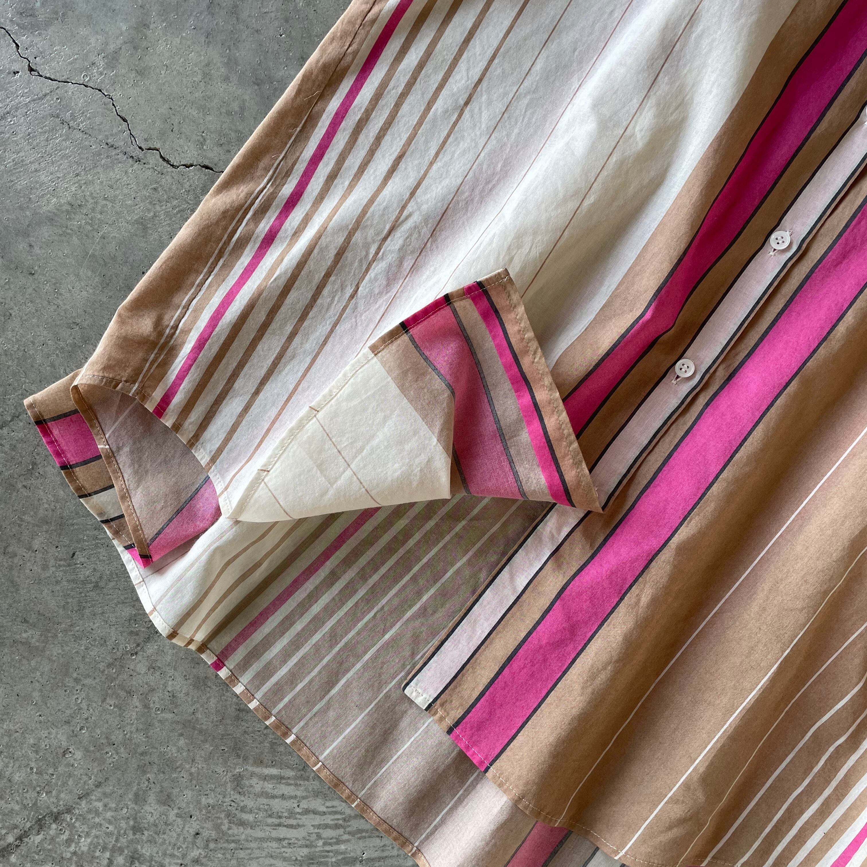 ピンク×ベージュ配色がとってもオシャレなストライプブラウス。