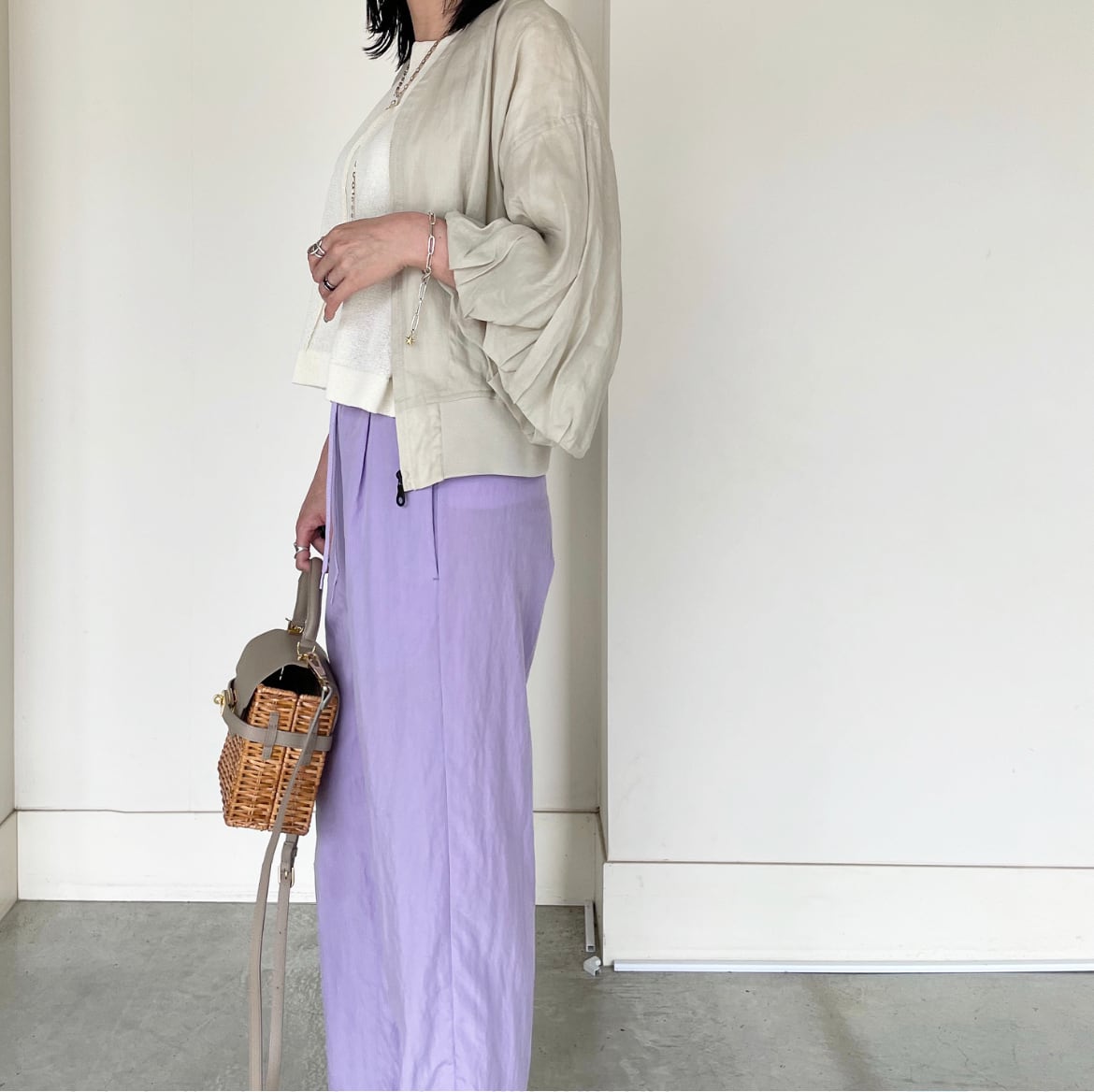 短めの丈感なのでワンピースにさっと羽織ったり、スカートやワイドパンツなどのボリュームボトムスとも相性抜群♪