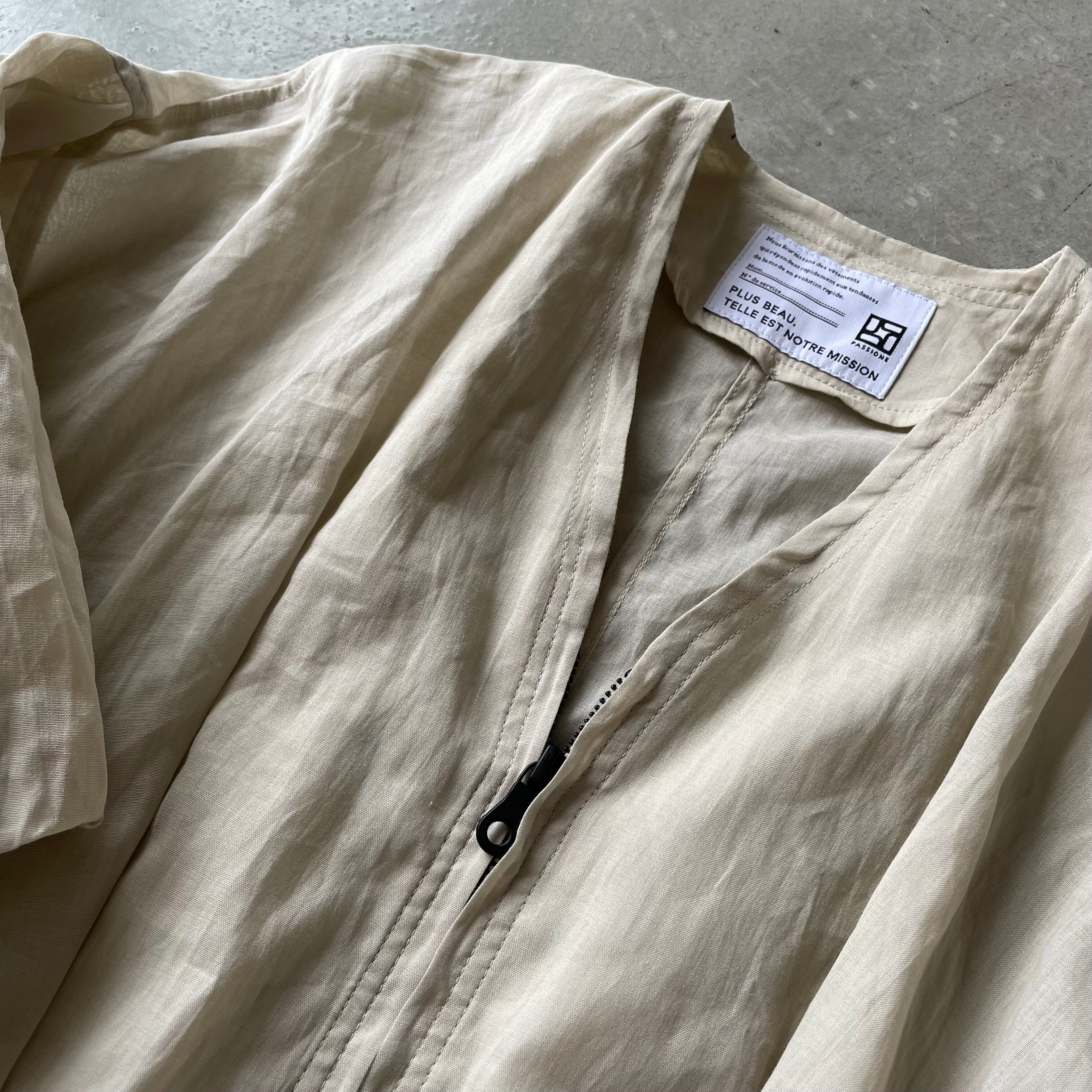 ボリュームお袖が羽織りものに♪!夏の冷房対策にも◎♪ Vネックジップアップブルゾンです。