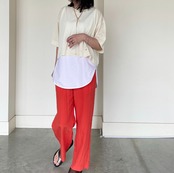 今回は鮮やかなカラーパンツとコーディネートしてみました。