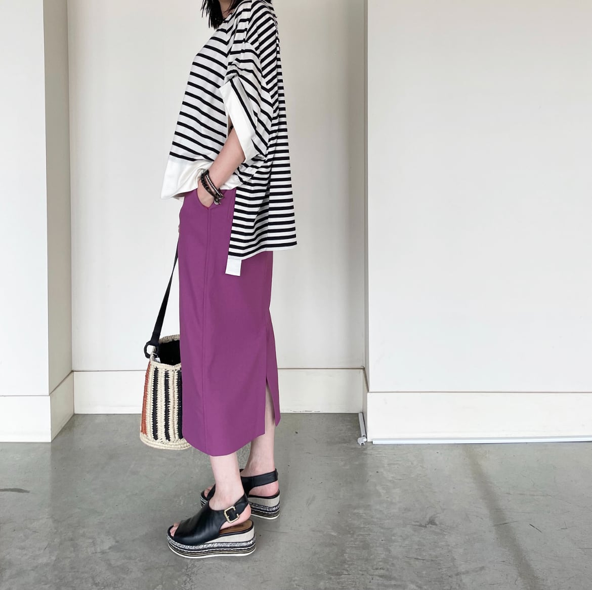 今回はこちらも履き心地抜群な、ストレッチタイトスカートで合わせてみましたよ。