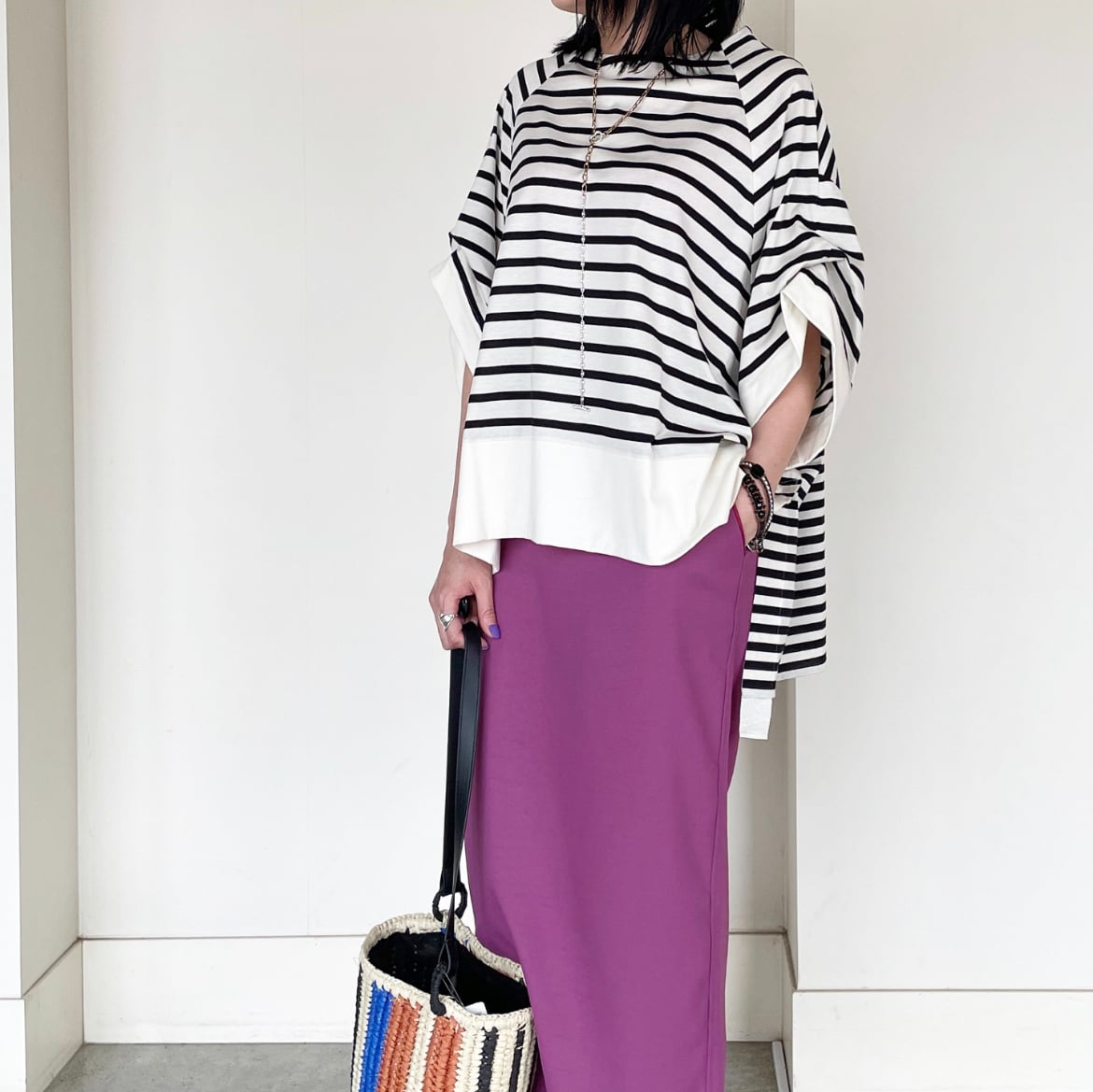 オフホワイト×ブラックのボーダー組み合わせなので、カラーボトムとの相性も抜群♪