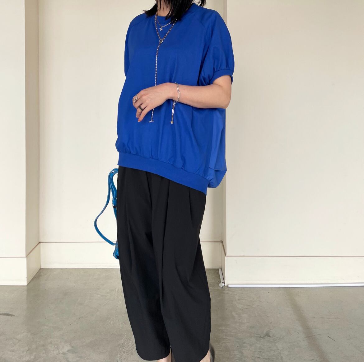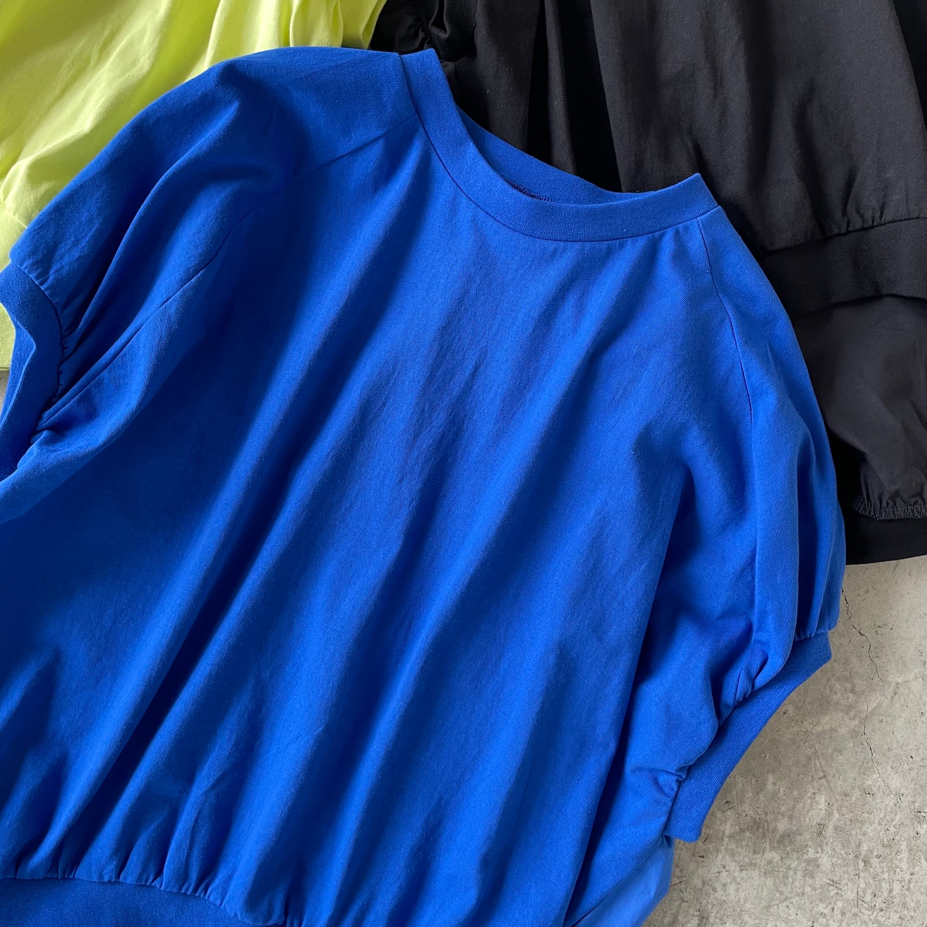 ふんわりシルエットでゆるっとイージー夏コーデ♪ 異素材コンビプルオーバー カットソートップスです。