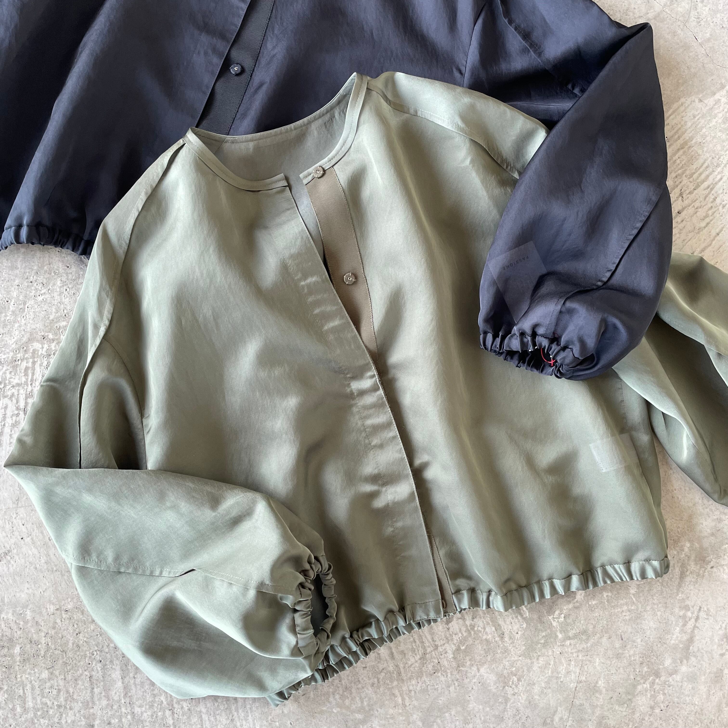 トレンドライクな"シアー素材"でコーディネートのアクセントにも♪ ノーカラーシアーブルゾンです。