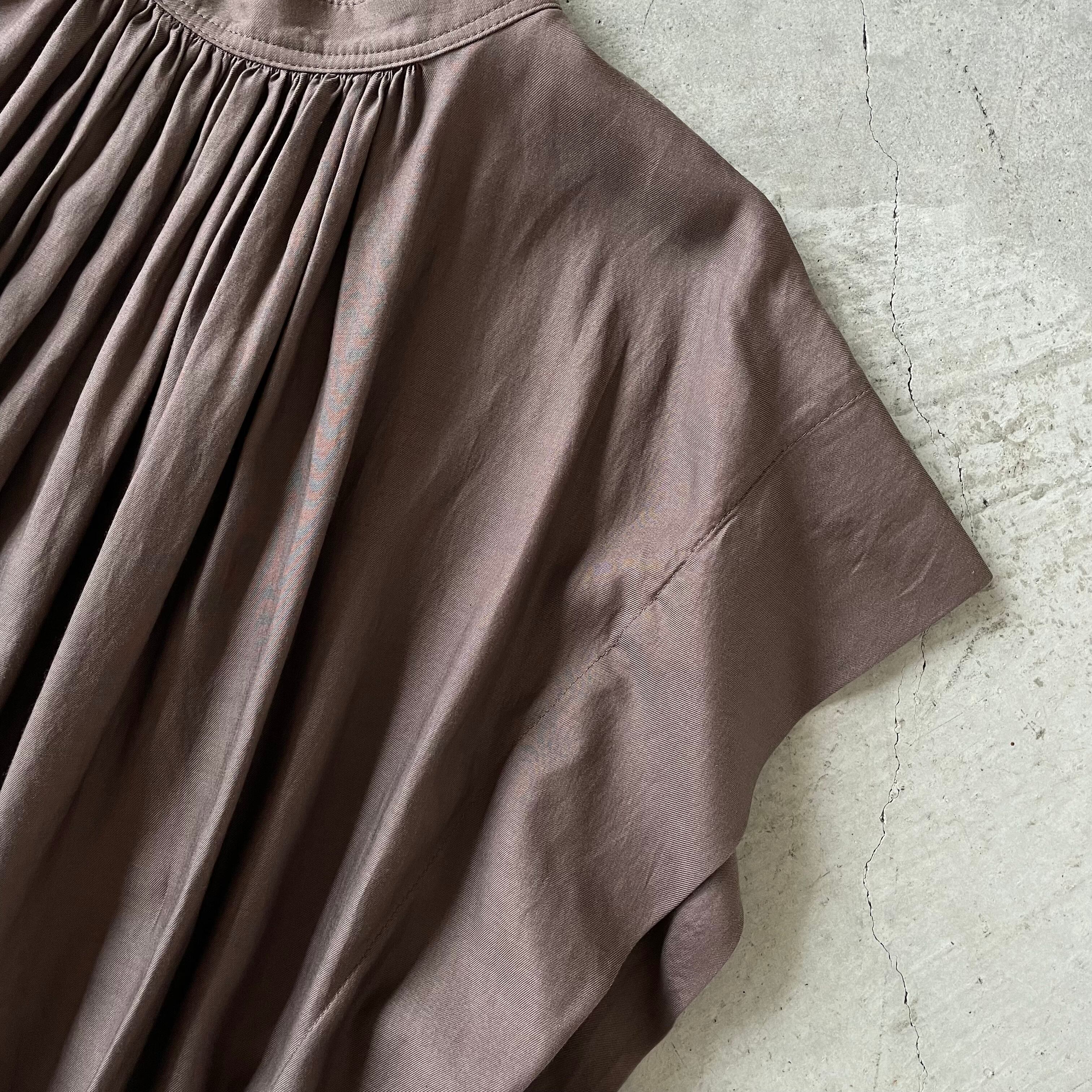 ハイネックデザインとたっぷりなギャザーがポイントのブラウス。
