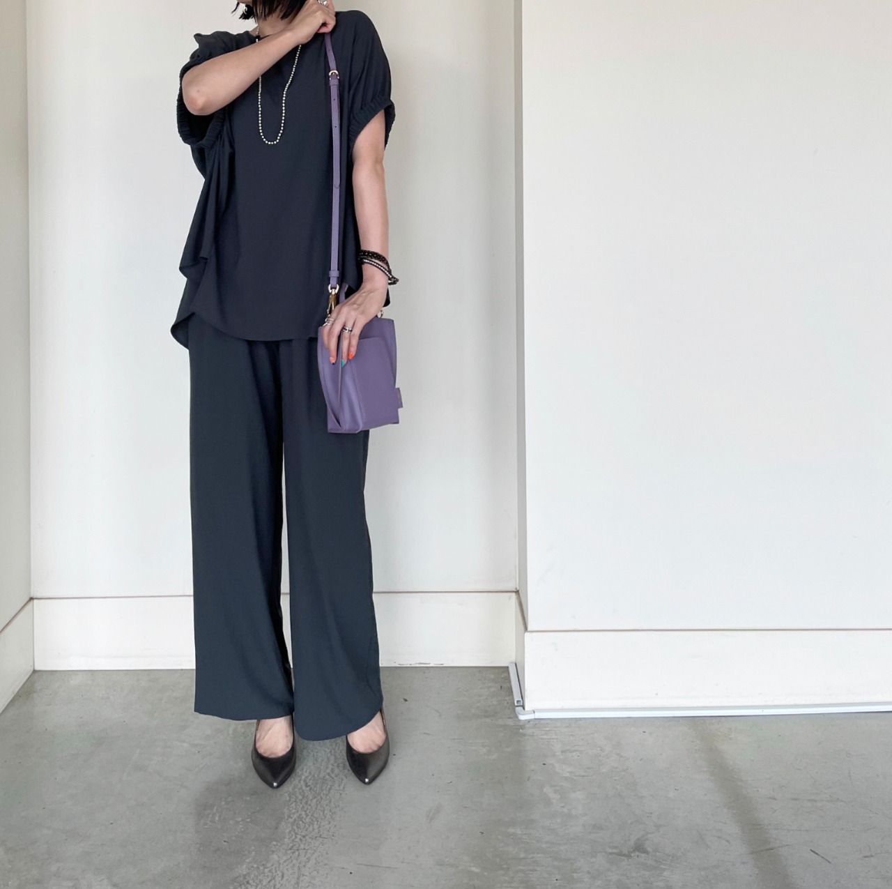 オトナの"秋"先取りコーデはこれで決まり!セットアップにもなっちゃう♪ カットソーイージーセミワイドパンツです。
