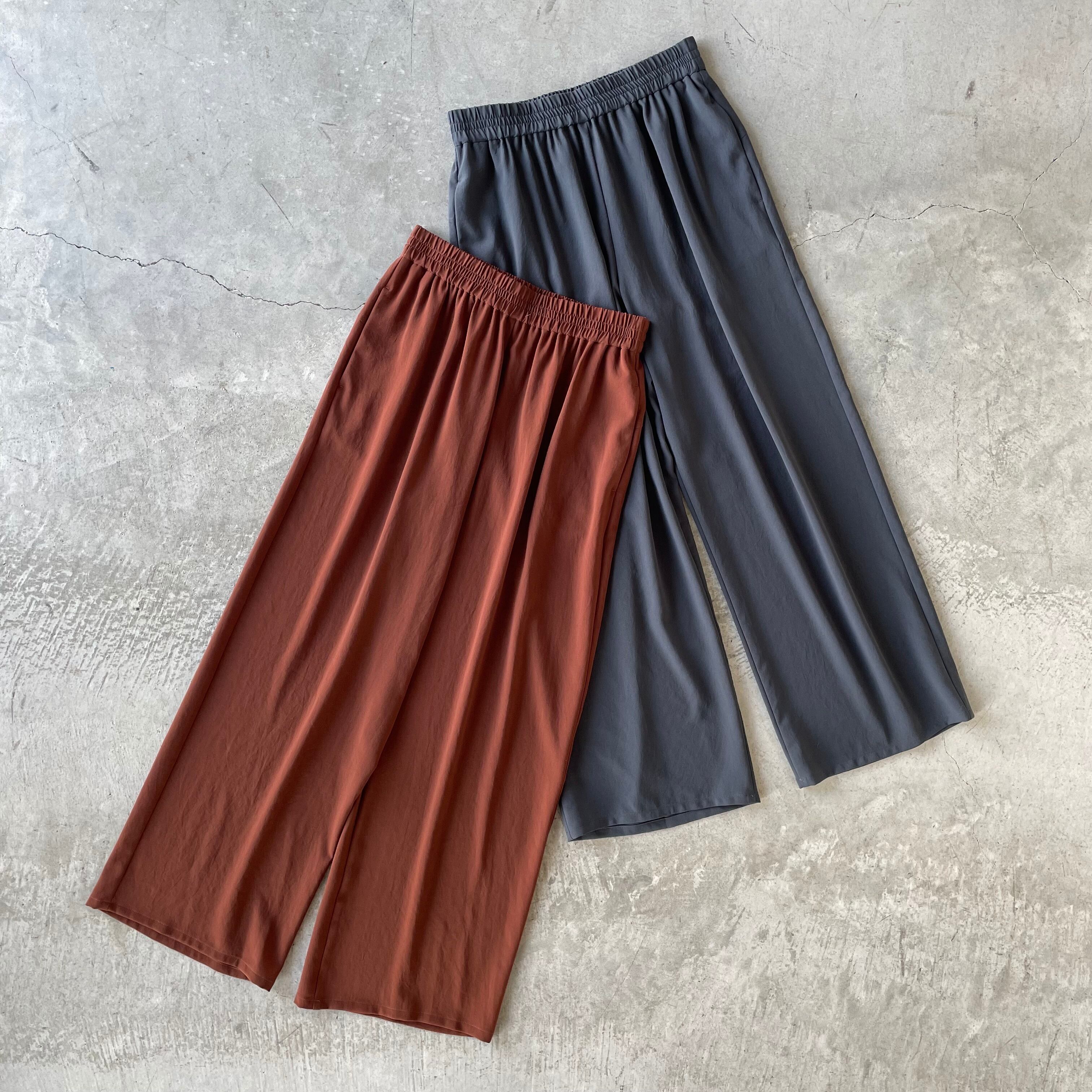 晩夏〜初秋までロングシーズン秋カラーを楽しめちゃう楽チンイージーパンツ。