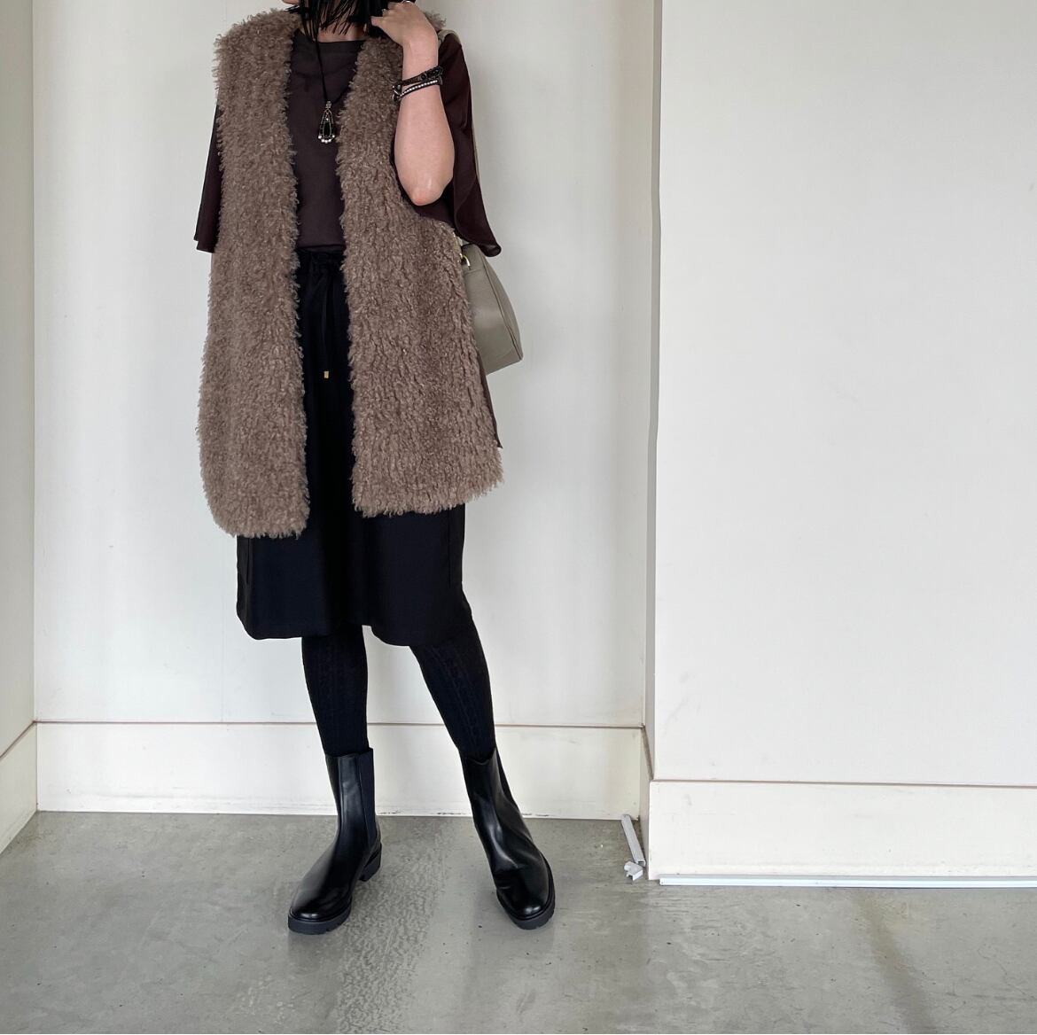 ショートブーツはもちろん、ロングブーツとのコーデもハマる、ちょうどな丈感もPOINT◎