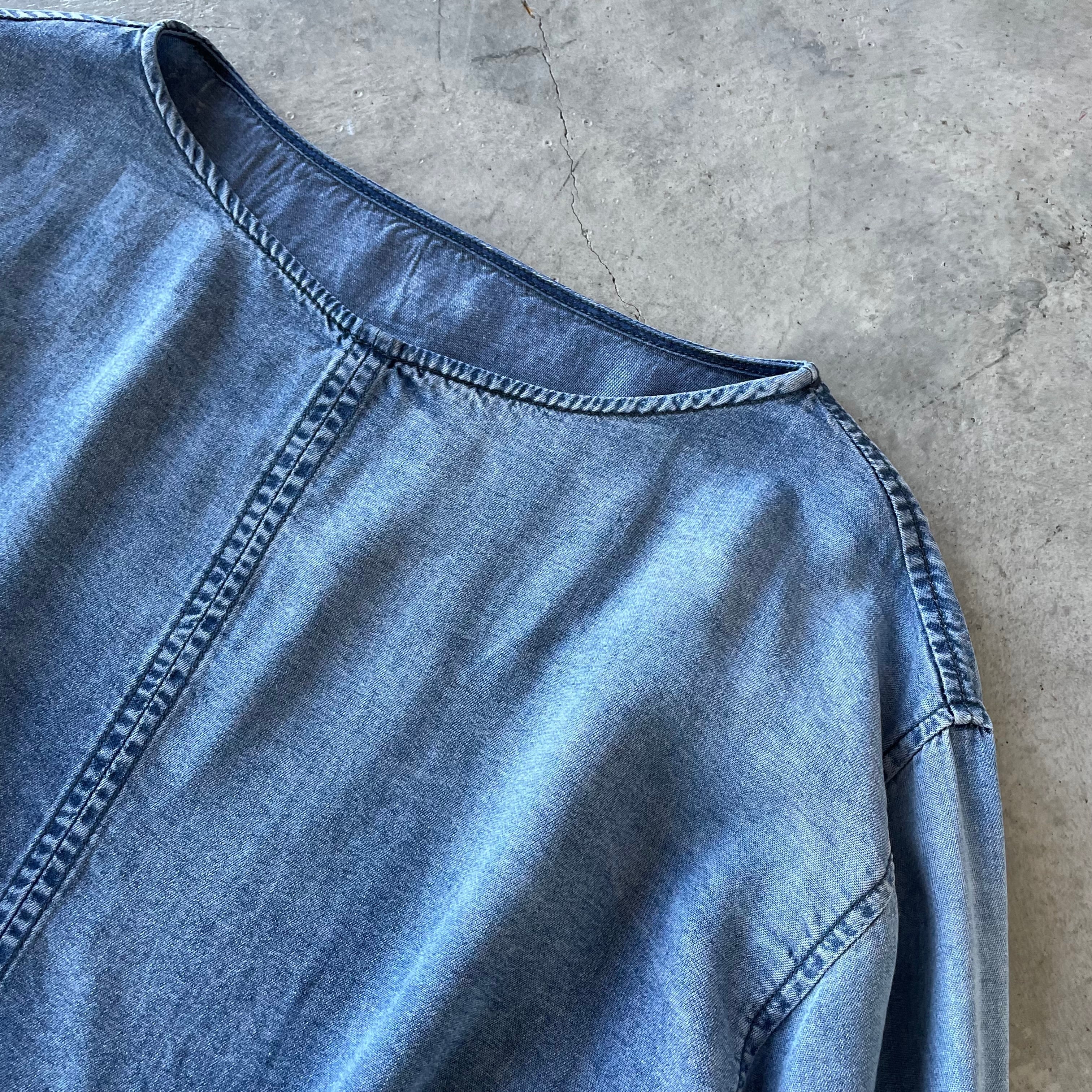 とろんとした柔らかな落ち感が魅力!デイリー使いにはやっぱりダンガリー♪ ラウンドヘムプルオーバーダンガリーブラウスです。