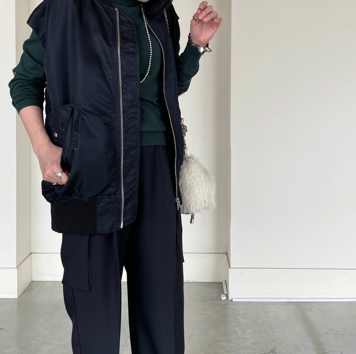 メンズライクになり過ぎない! ふんわりシルエットが女性らしい♪ MA-1 ライクベストです。