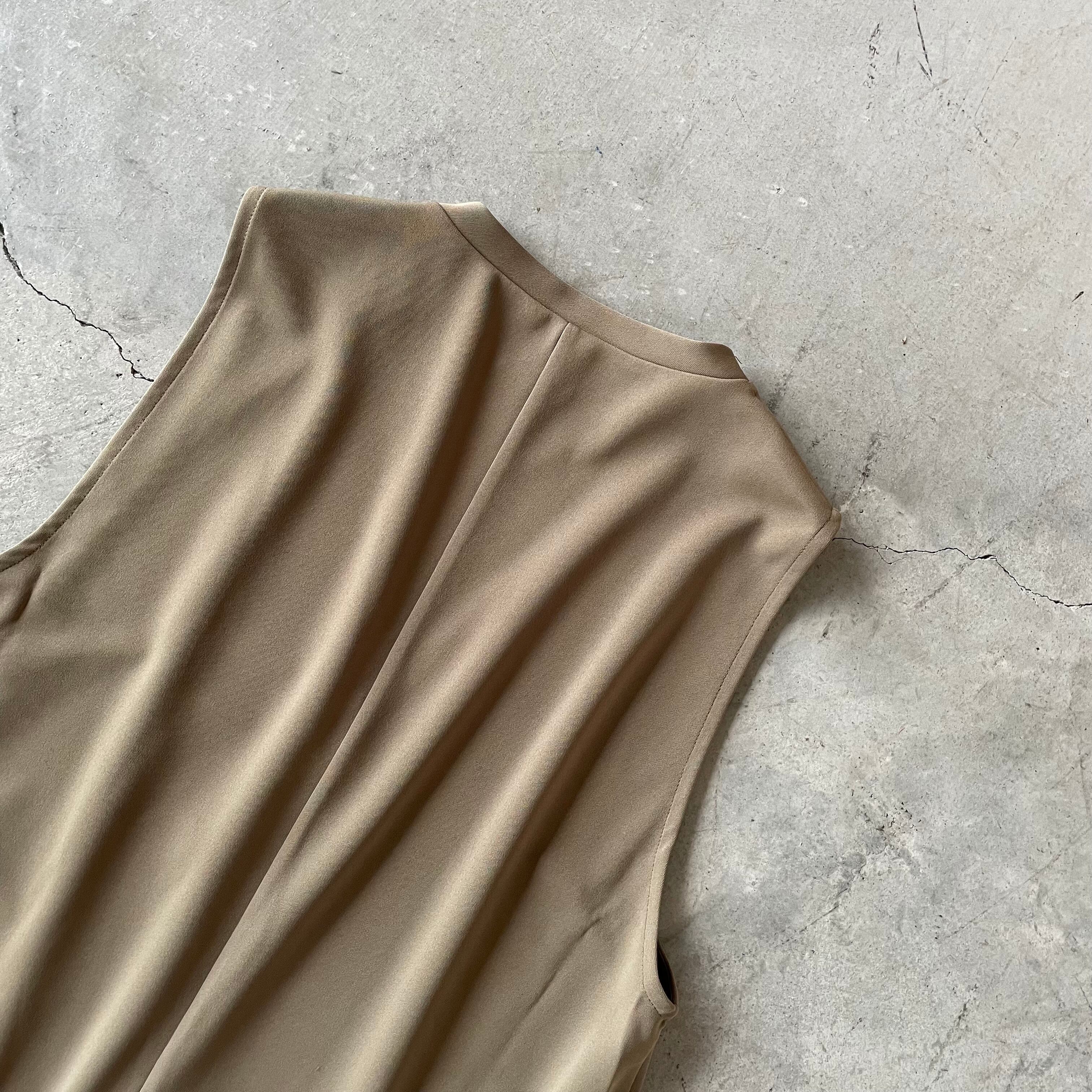 Vネックでスッキリシルエット、シンプルで着まわし易いデザインのジレ。