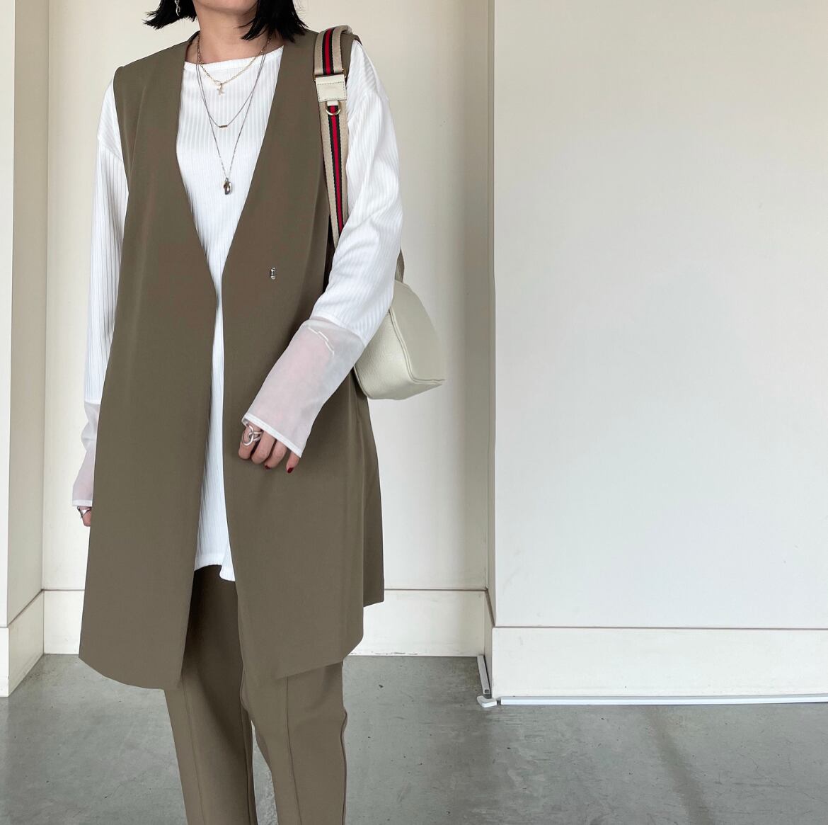同素材のジレとのセットアップでの着こなしもオススメ◎。