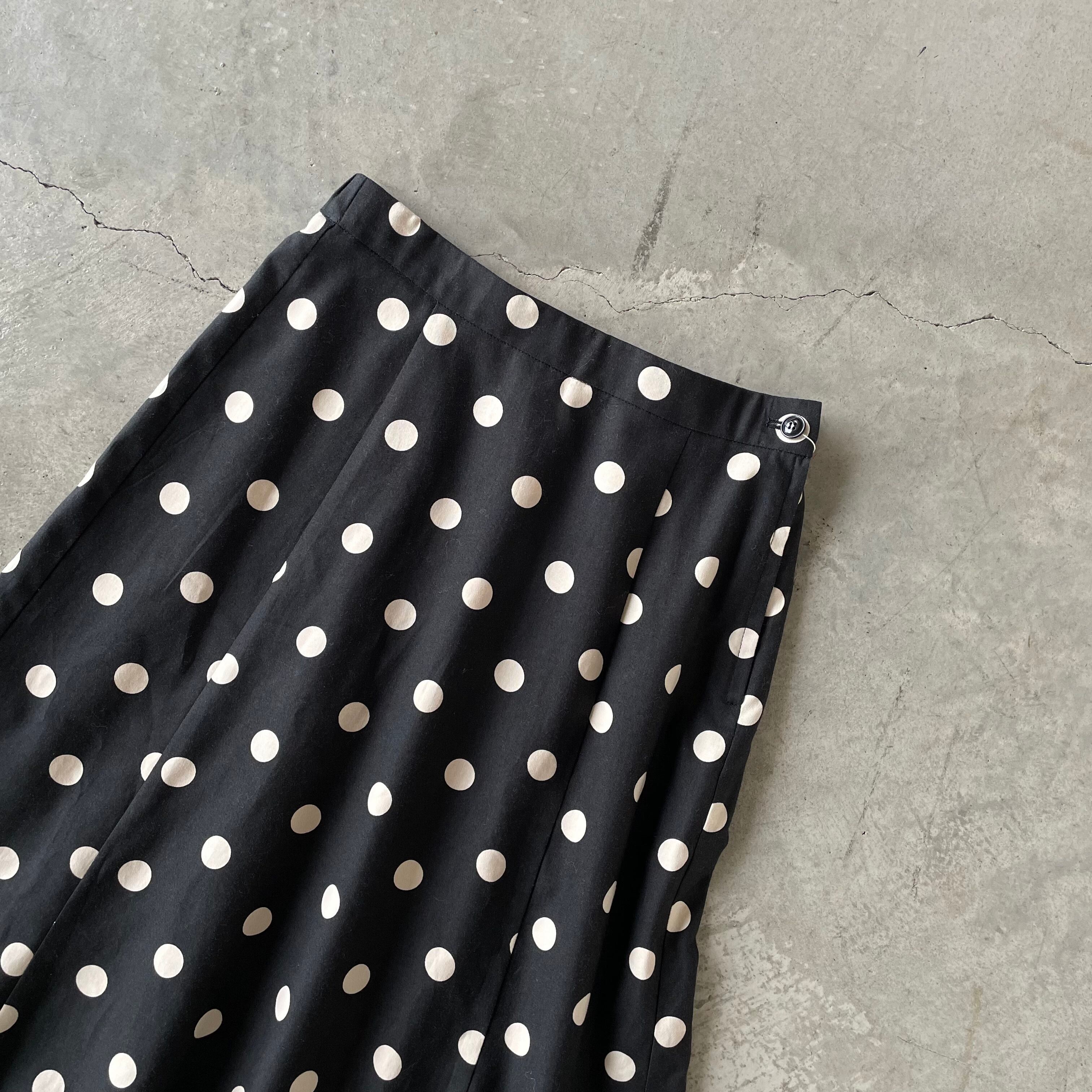 大きめなドットプリントが目を惹く、フレアロングスカート。