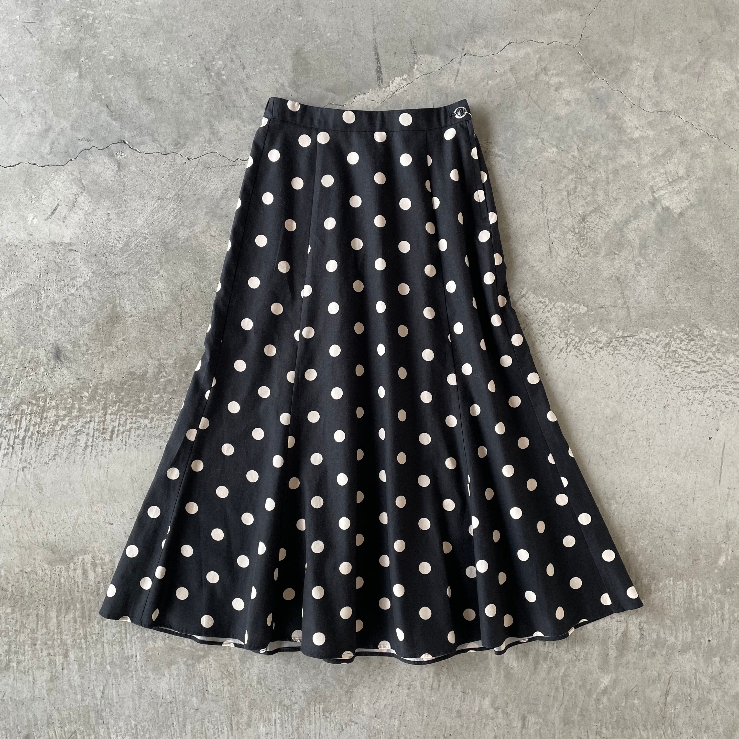 “再入荷”大きめドットで鮮度UPなコーディネートに♪ ドットプリント美シルエット フレアロングスカート/le ciel de HARRISS ルシェルドハリス