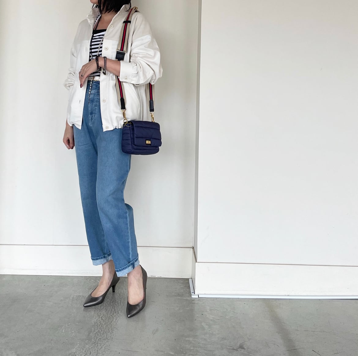細身のパンツ、ゆるテーパードパンツなどのカジュアルパンツはもちろん、タイトラインのスカートとも好相性♪