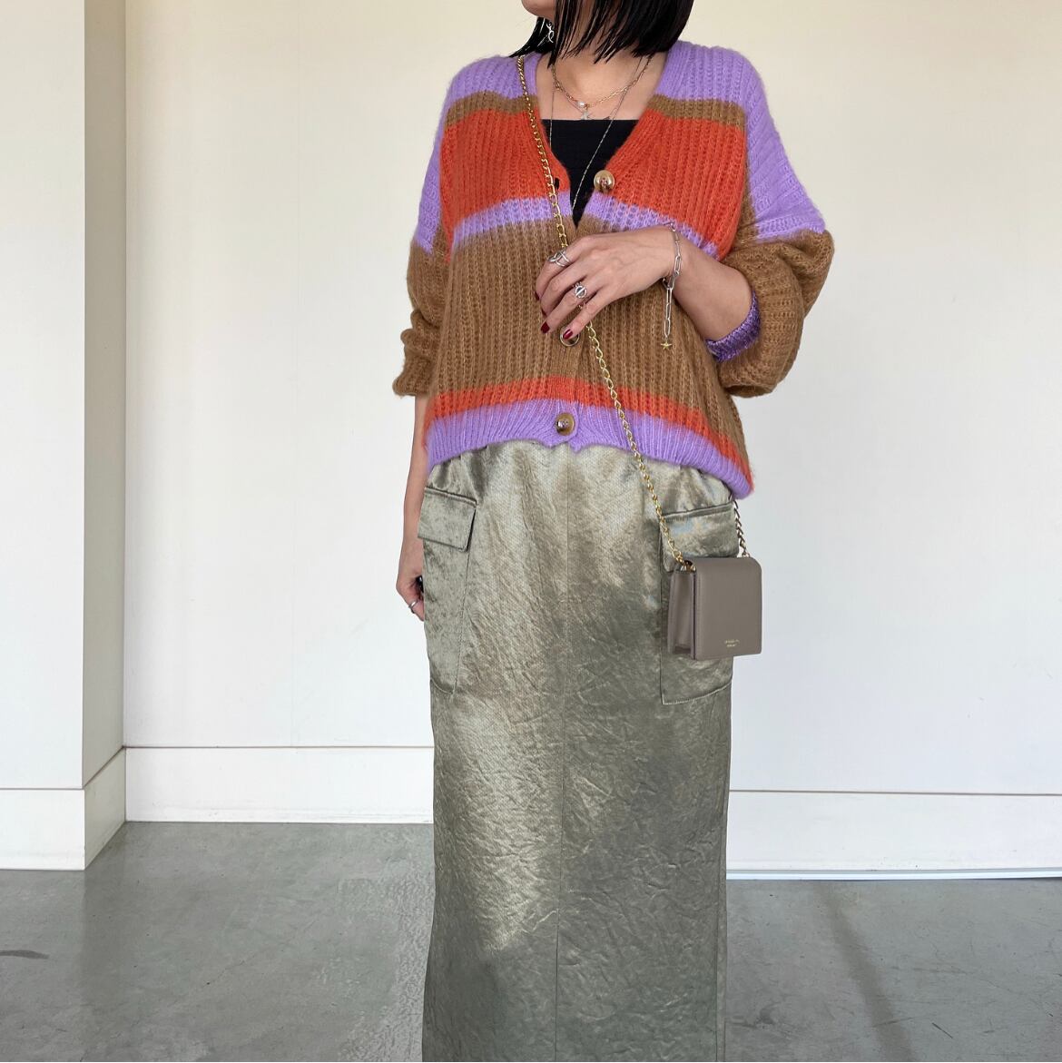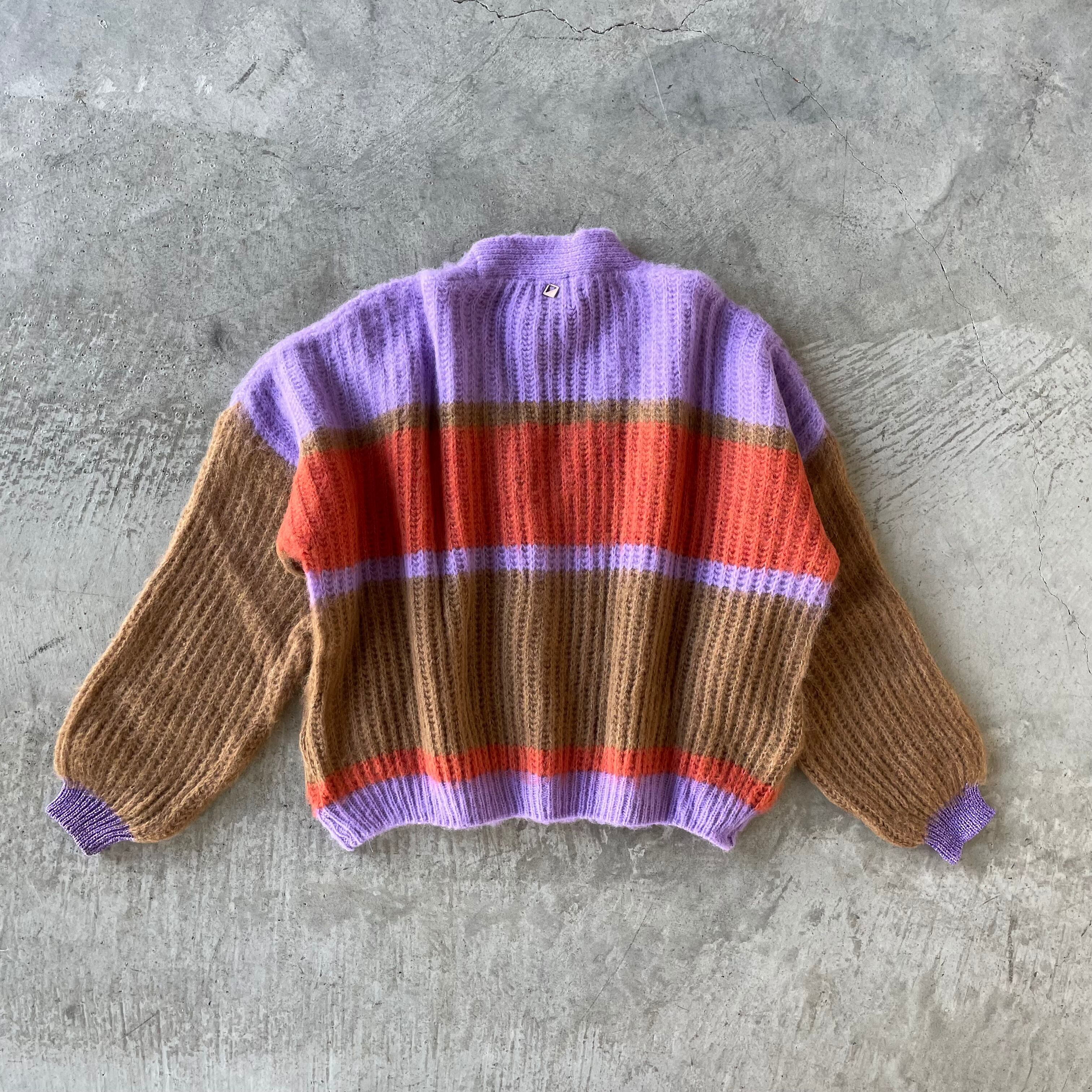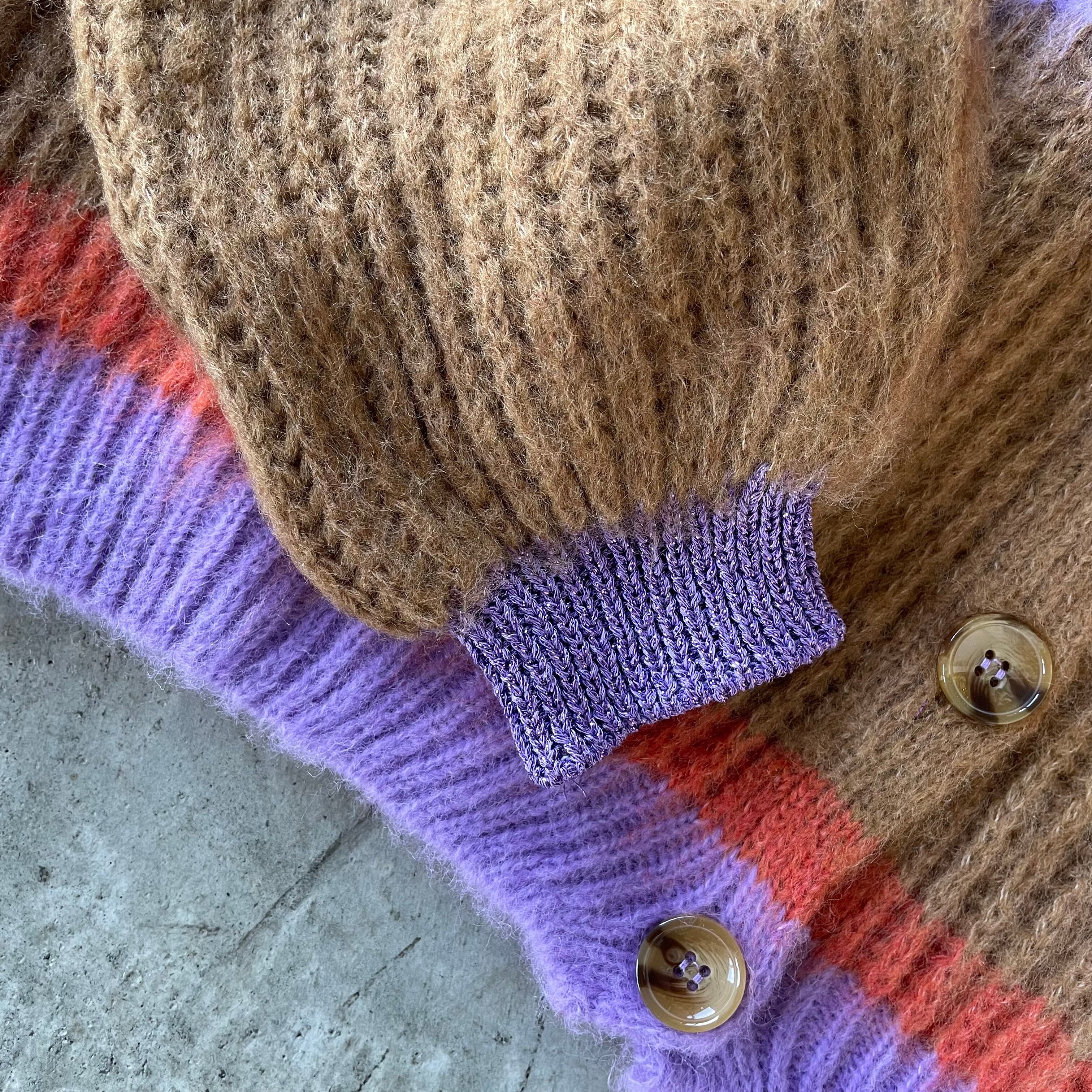 オシャレ配色で冬コーデも華やかに♪ モヘア混マルチボーダーVネックニットカーディガンです。