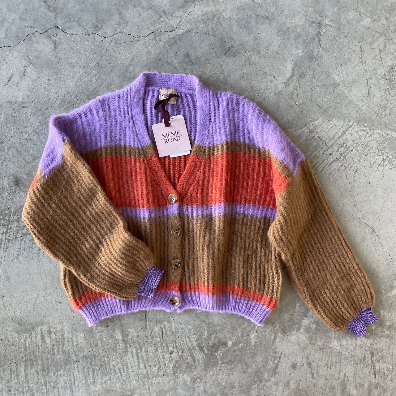 オシャレ配色で冬コーデも華やかに♪ モヘア混マルチボーダーVネックニットカーディガン/MEMEROAD メメロード
