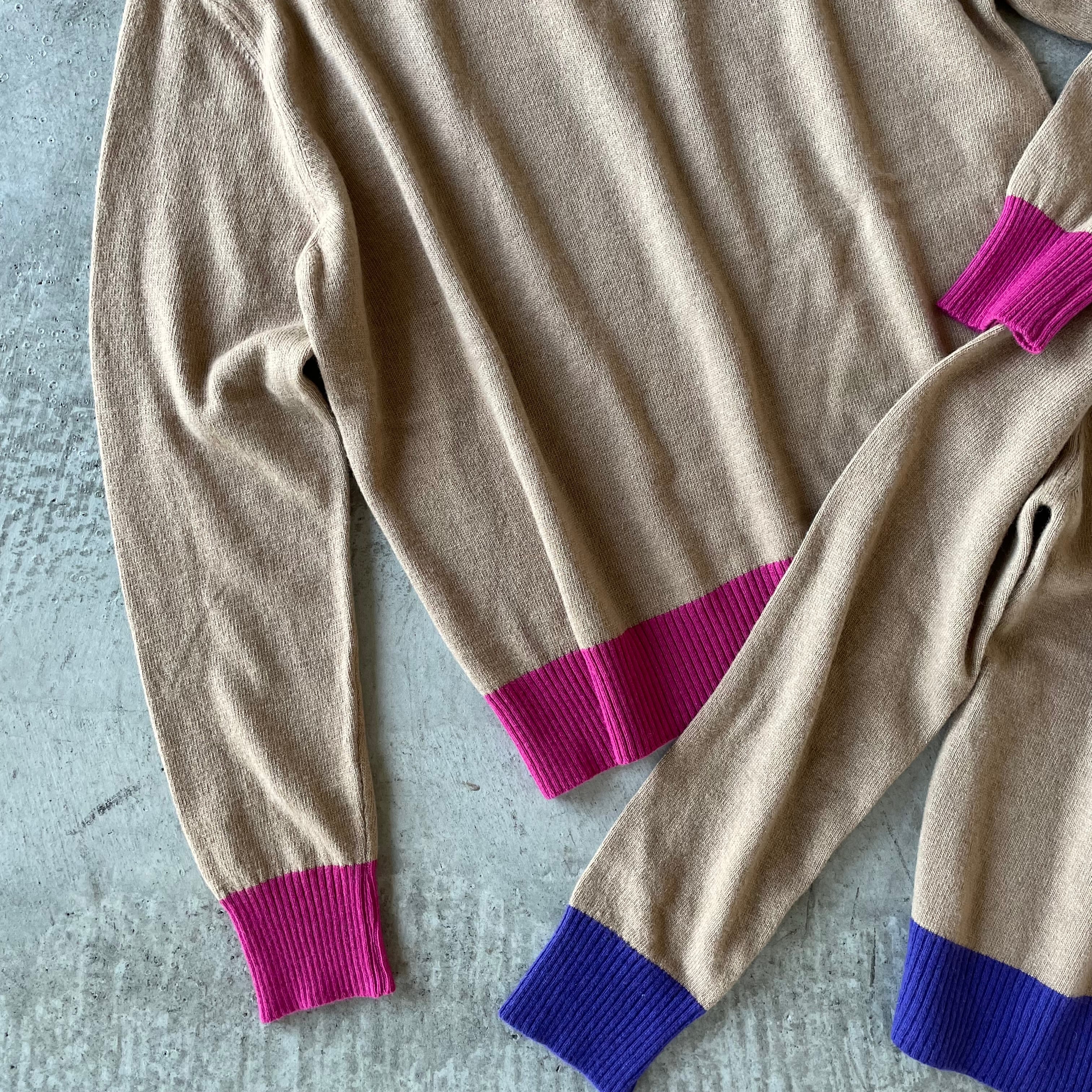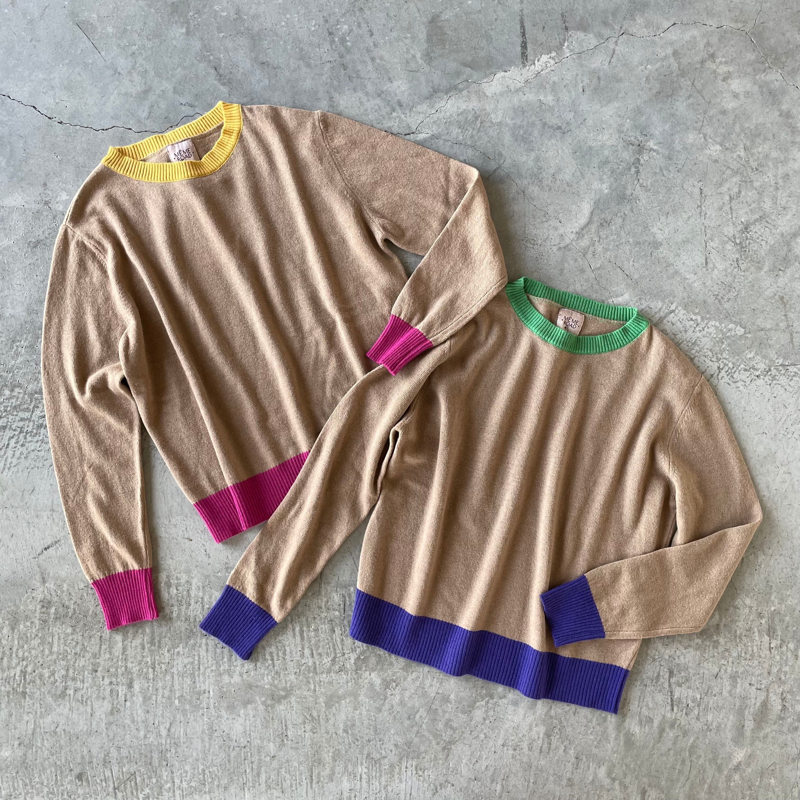 それぞれ、首元・お袖の配色が目を惹く♪丸首プルオーバーニット。