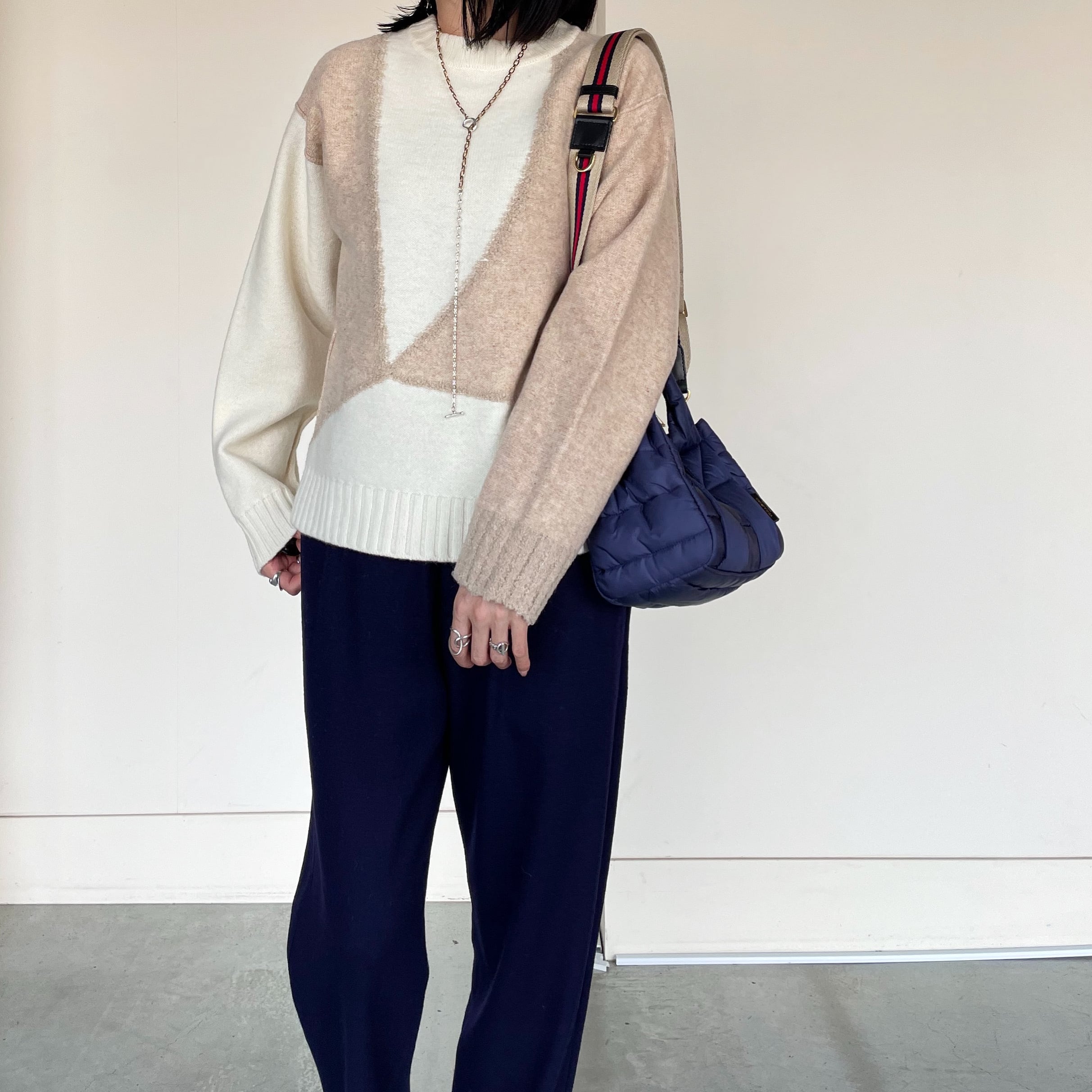 よ〜く見ると凝ってるんです!!こだわりデザインをたっぷり詰め込んだ♪配色ブロック切替プルオーバーニット /Si:m スィーム