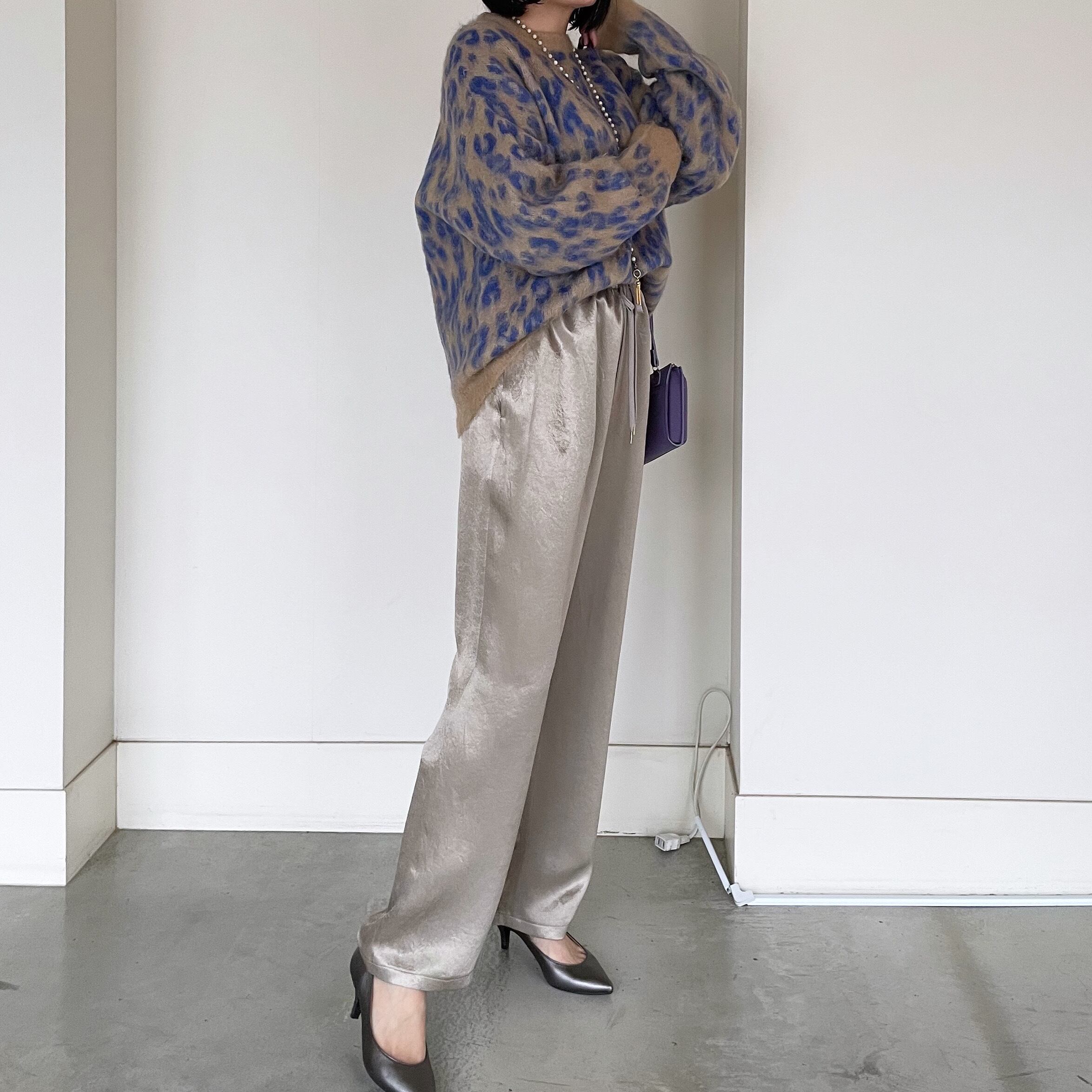 トップス次第で色々な着こなしの楽しめる、オススメサテンパンツです。