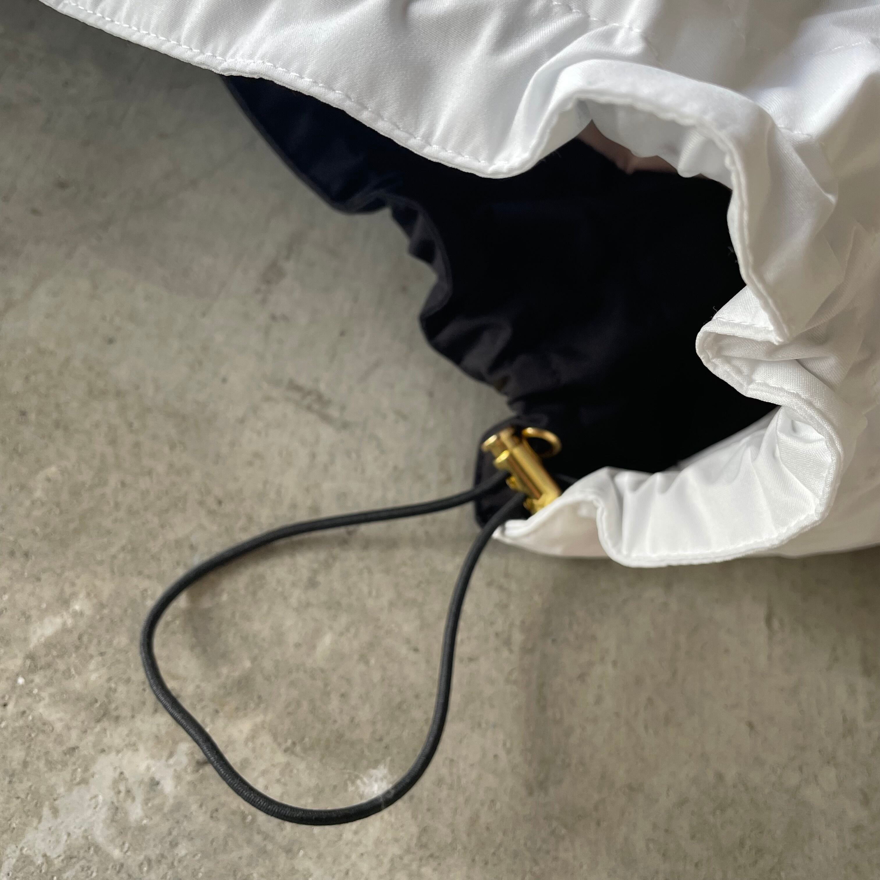 裾にコードが入っているのでストッパーで絞りを調節し、ふんわり丸みのあるシルエットにアレンジすることも可能です。
