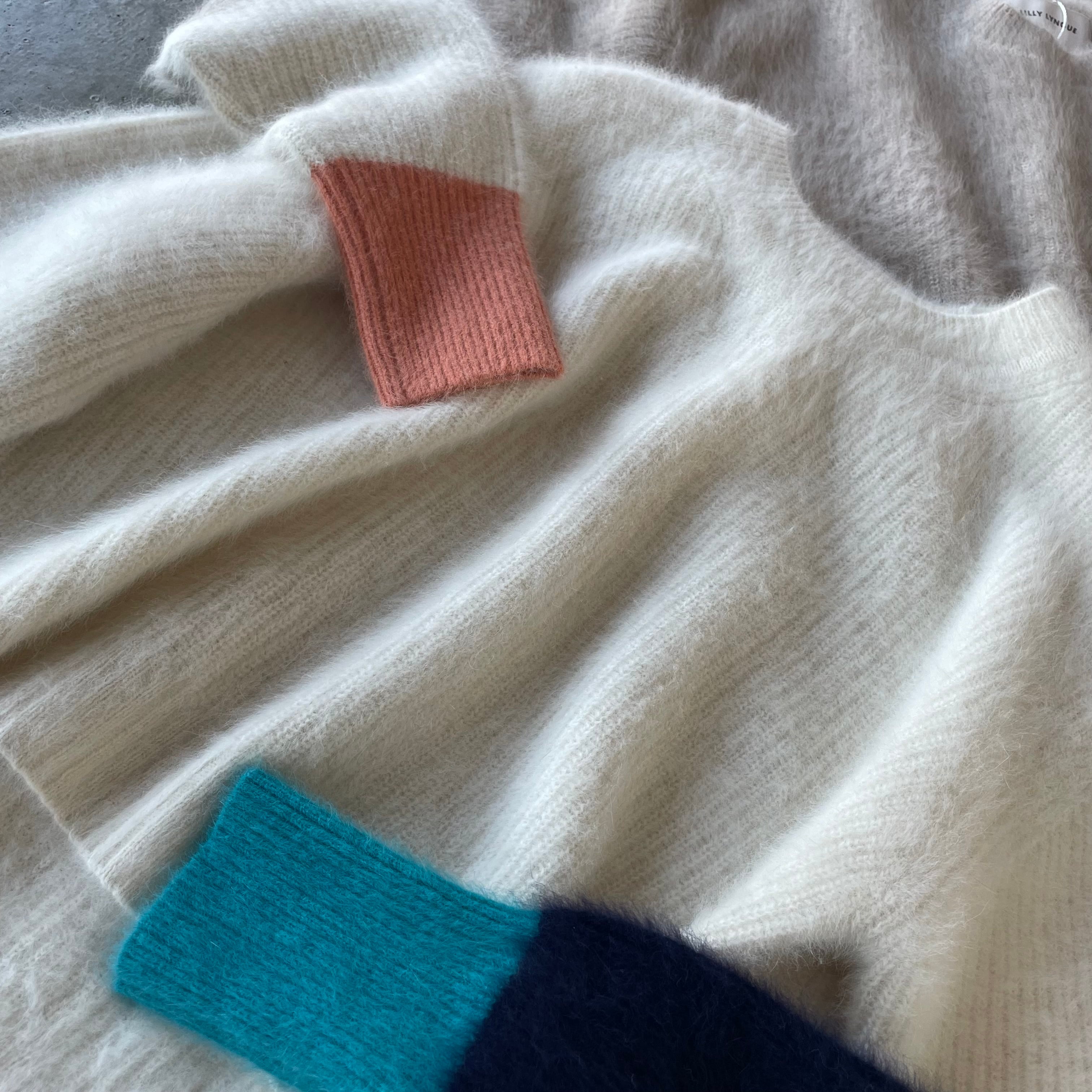 上質ニットでふんわ〜りあったか〜♪お袖のバイカラーもたまらない☆ フォックス×カシミヤ バイカラースリーブショートニット/LILY LYNQUE リリーリーン