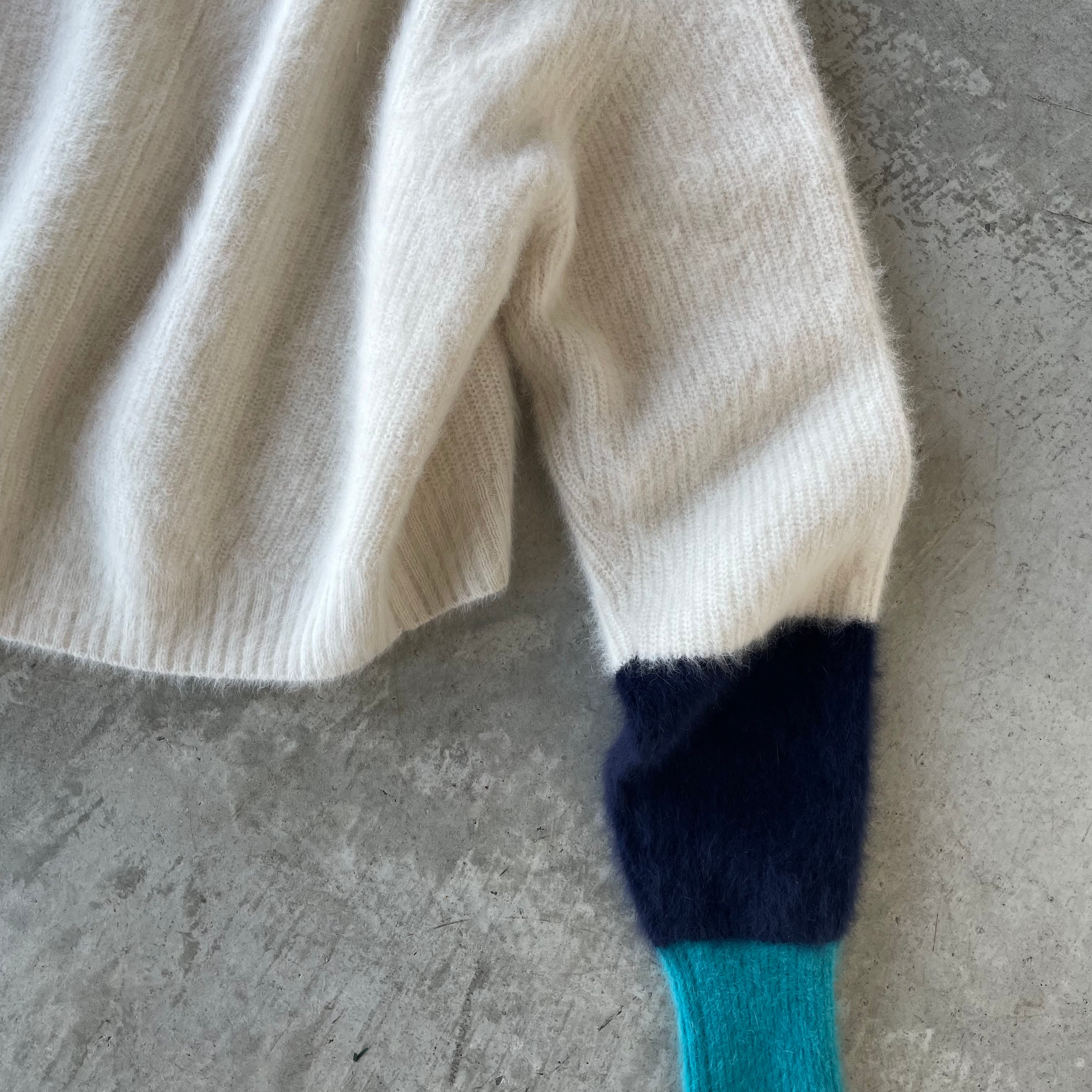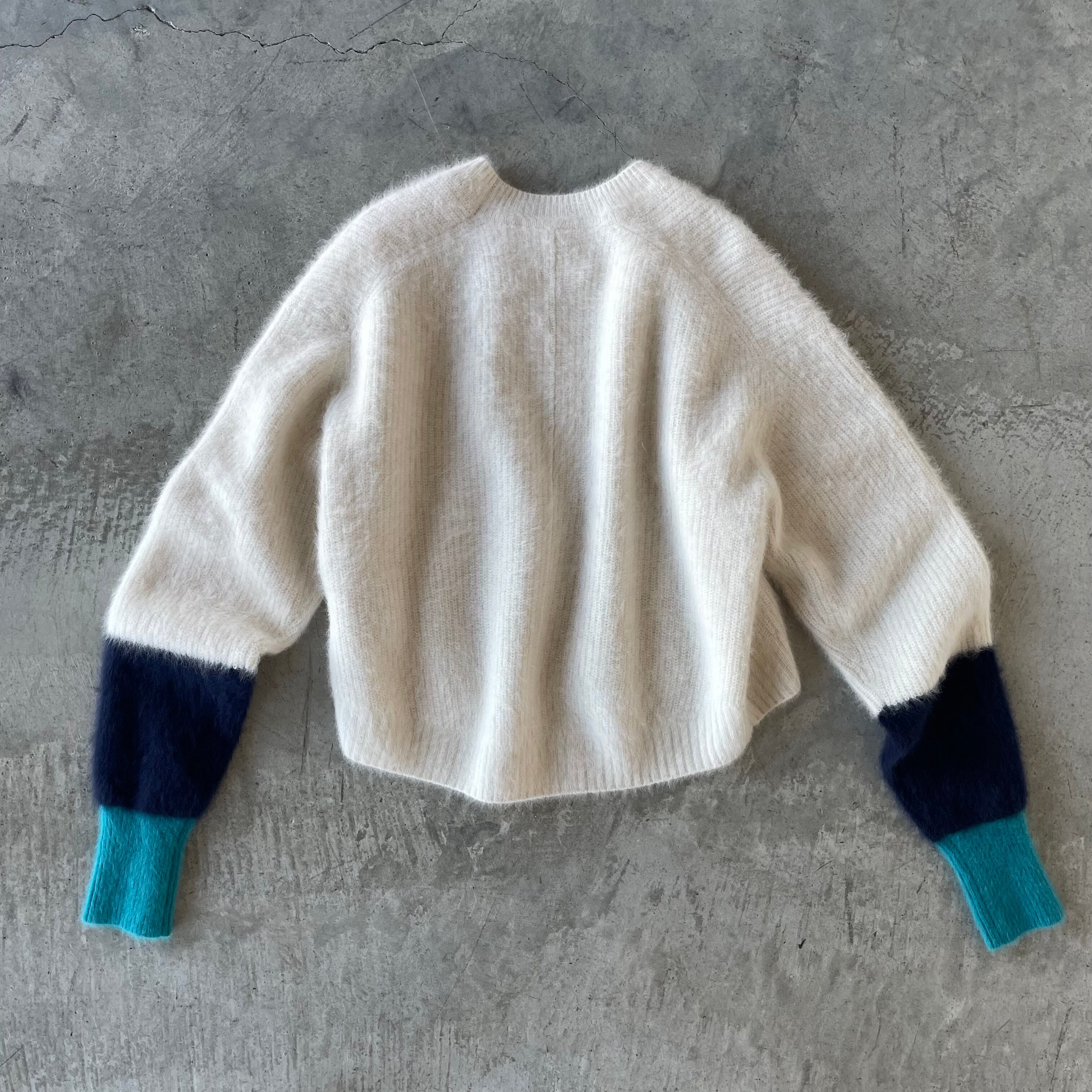 上質ニットでふんわ〜りあったか〜♪お袖のバイカラーもたまらない☆ フォックス×カシミヤ バイカラースリーブショートニットです。