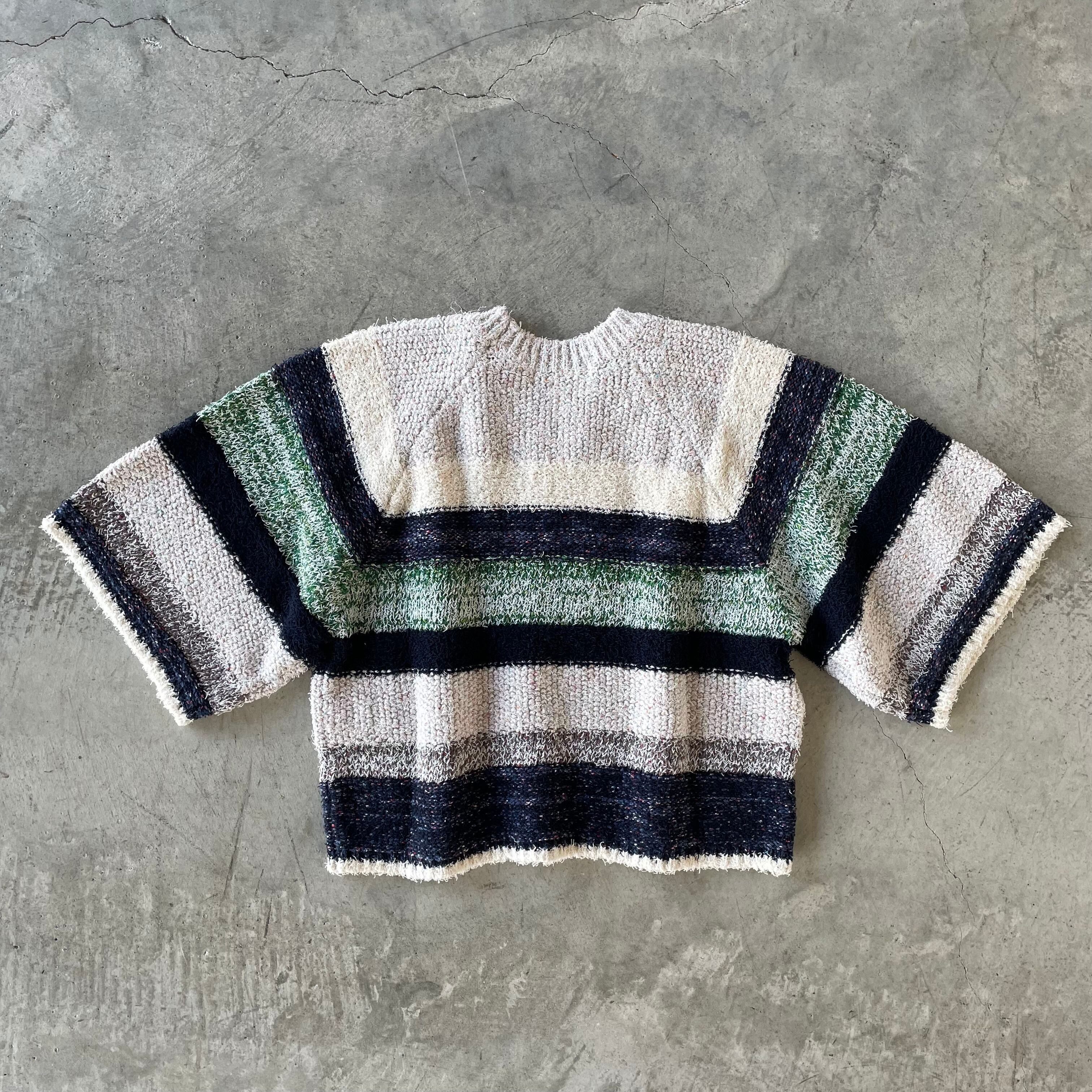 MIX糸とボーダー柄で雰囲気あるコーディネートに♪ツイードボーダー ハーフスリーブプルオーバーです。