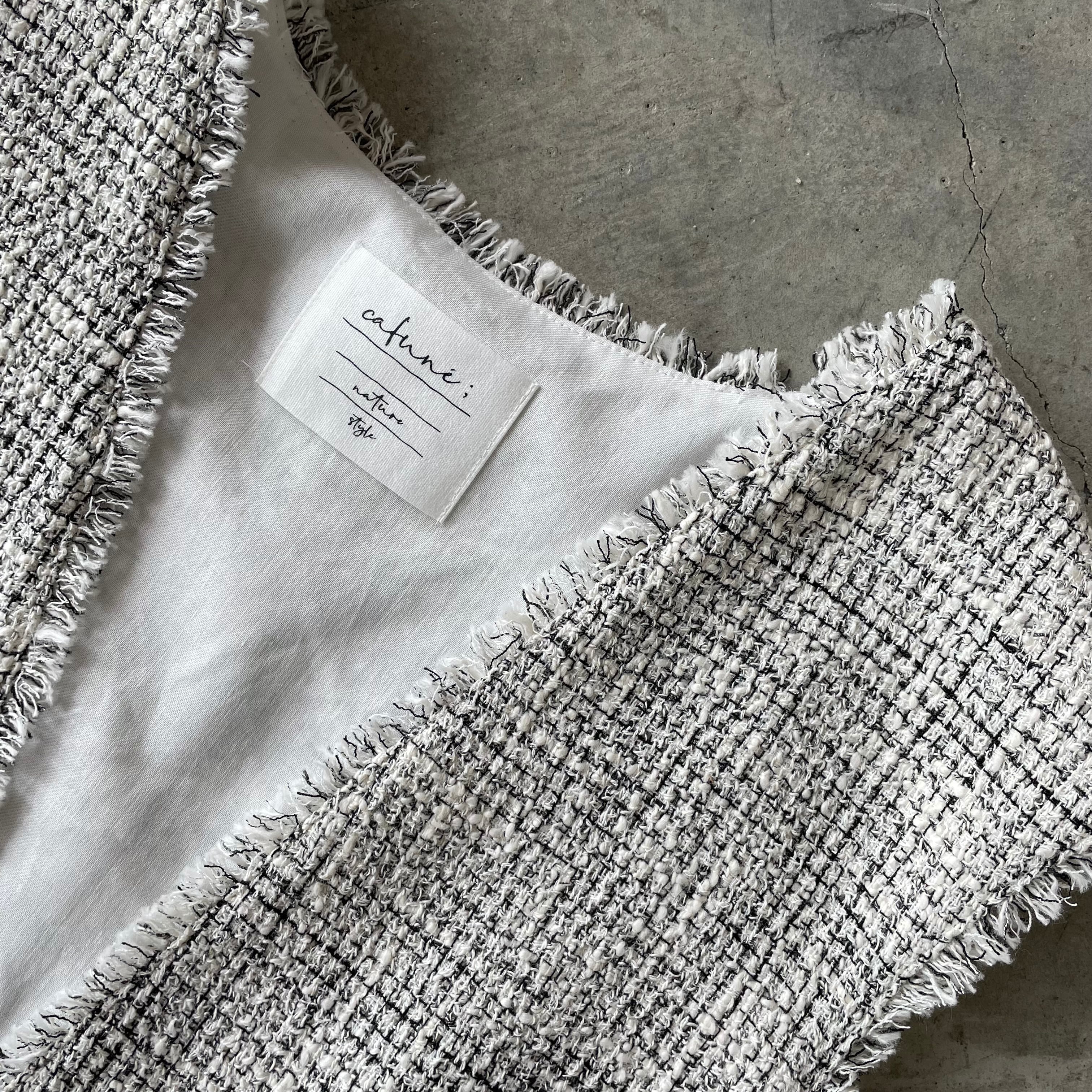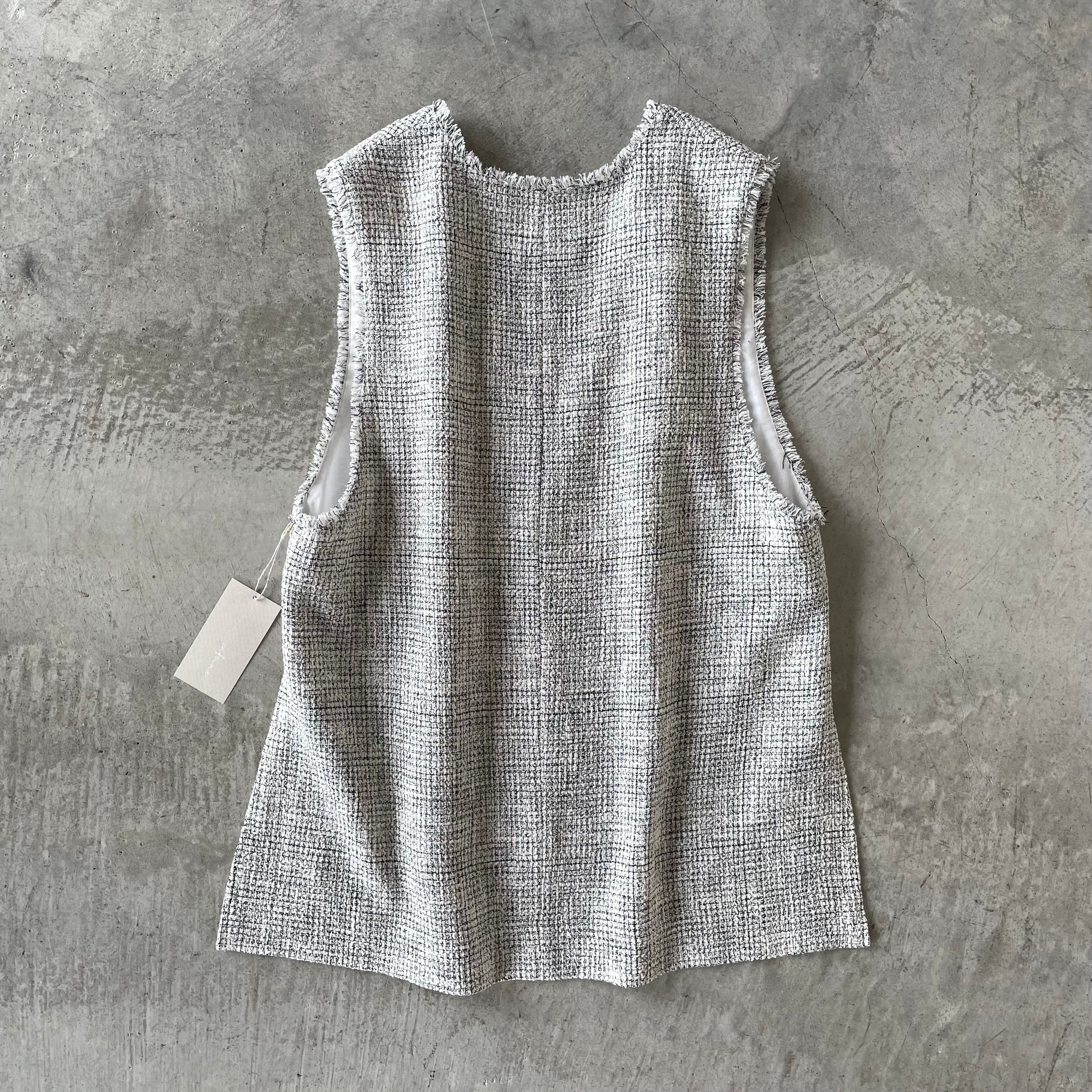 再々入荷!春のレイヤードコーデを楽しめちゃう♪Vネックフリンジ ツイードベスト/cafune カフネ