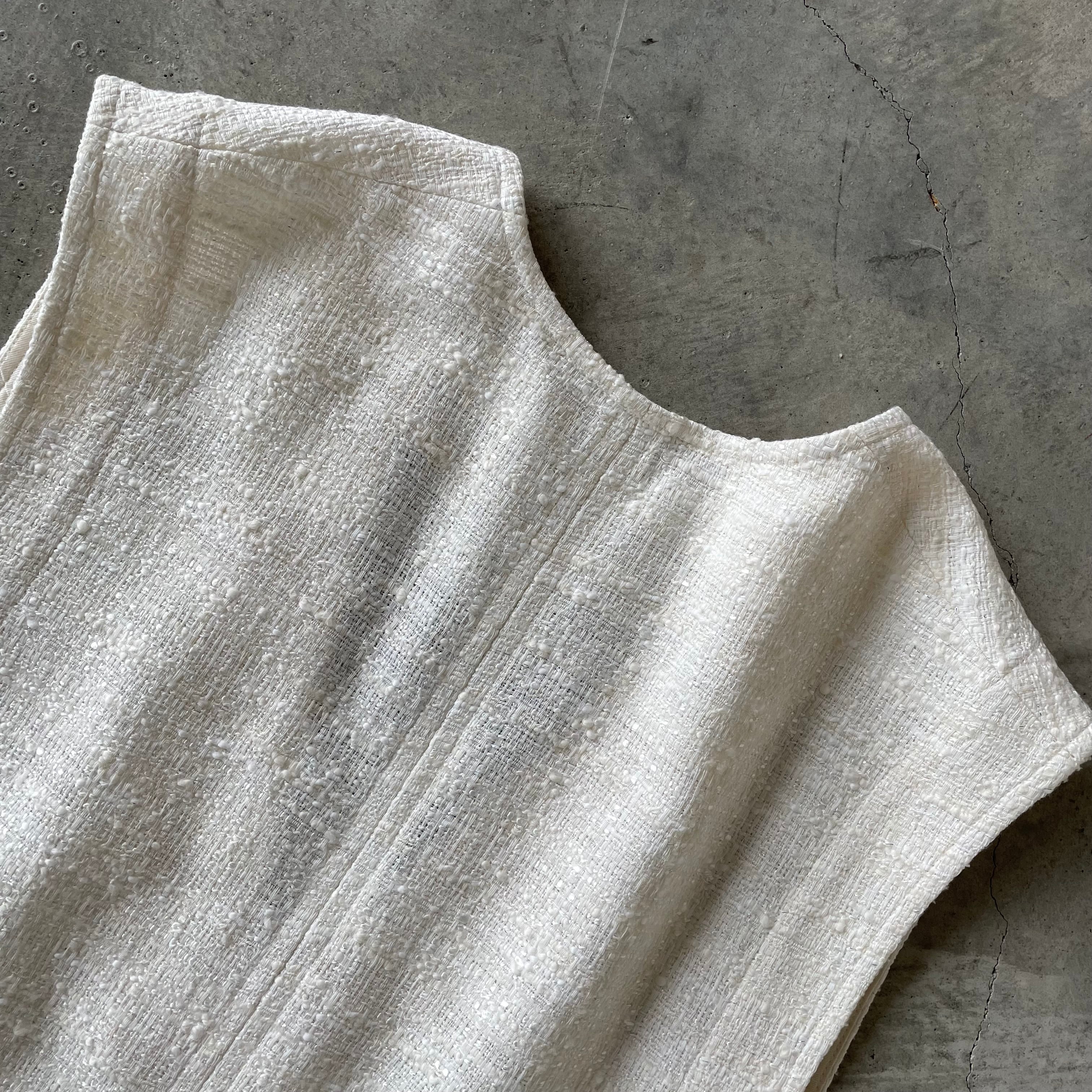 まだまだトレンド&人気継続中!! 春コーデのプラスワンアイテム♪ サイドベルトVネック ツイードベストです。
