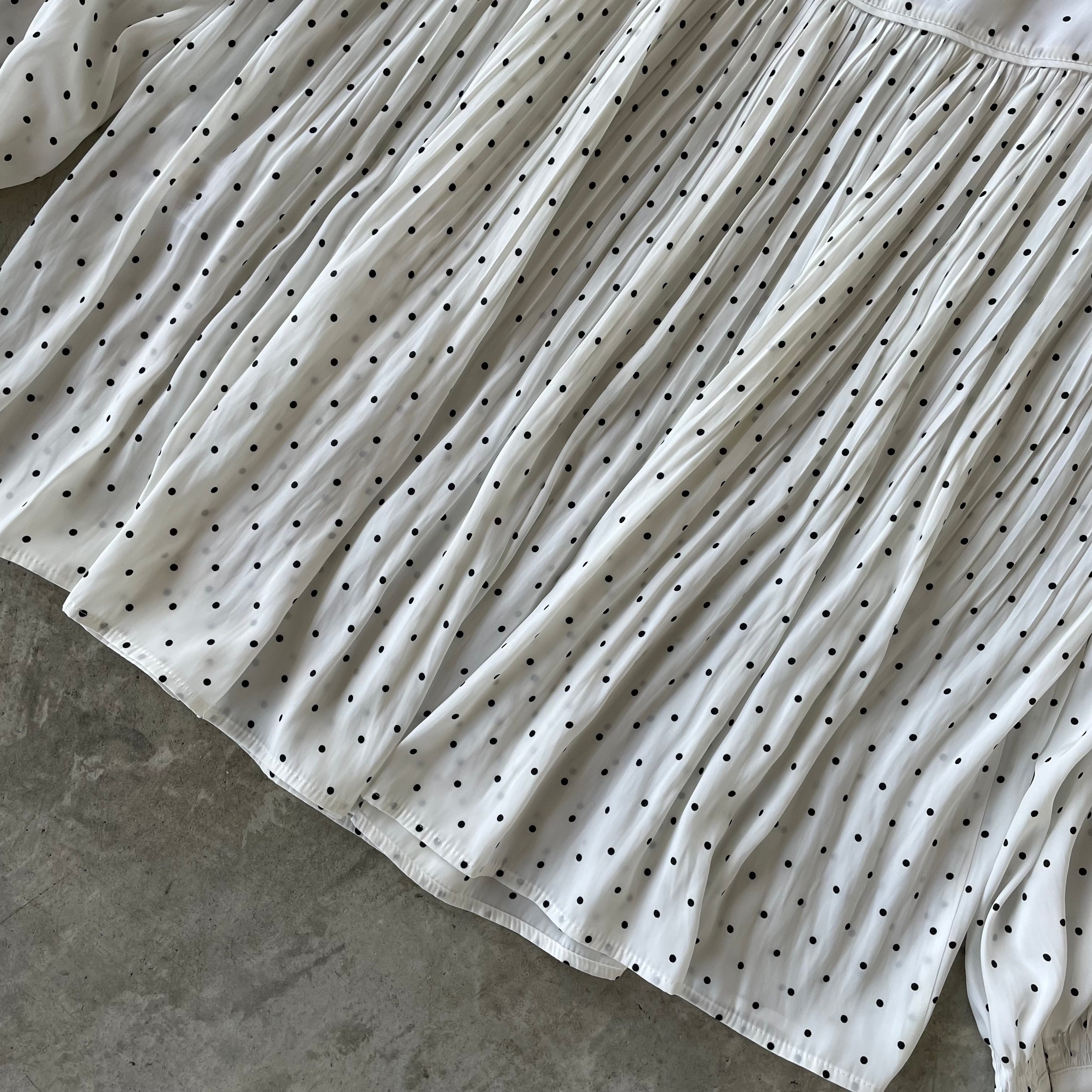 たっぷりギャザーでオトナなフェミニンコーデ♪ ドットプリントギャザーブラウスです。
