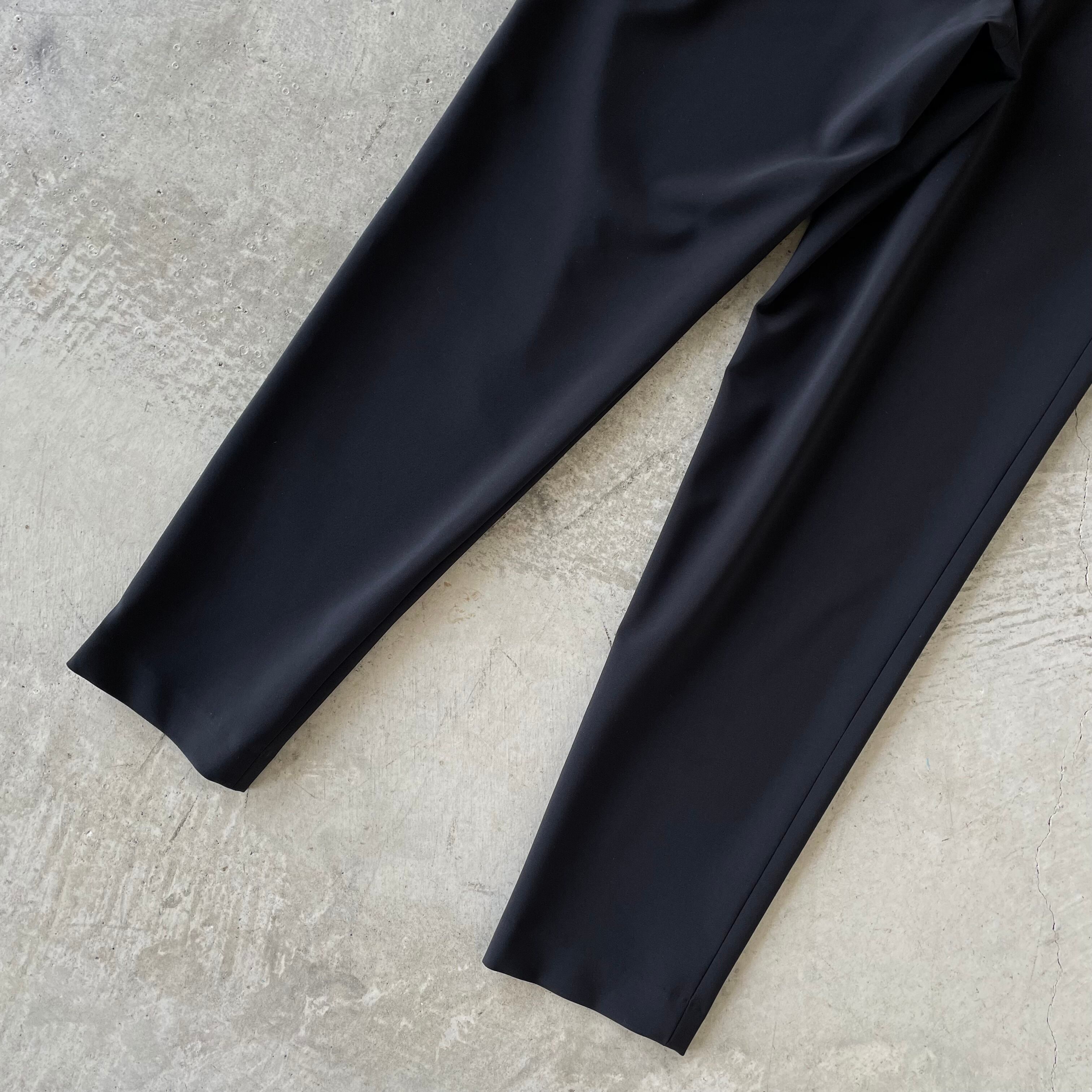 スタイリッシュな素材感とシルエットでありながら、ウエストゴムでストレスフリー。