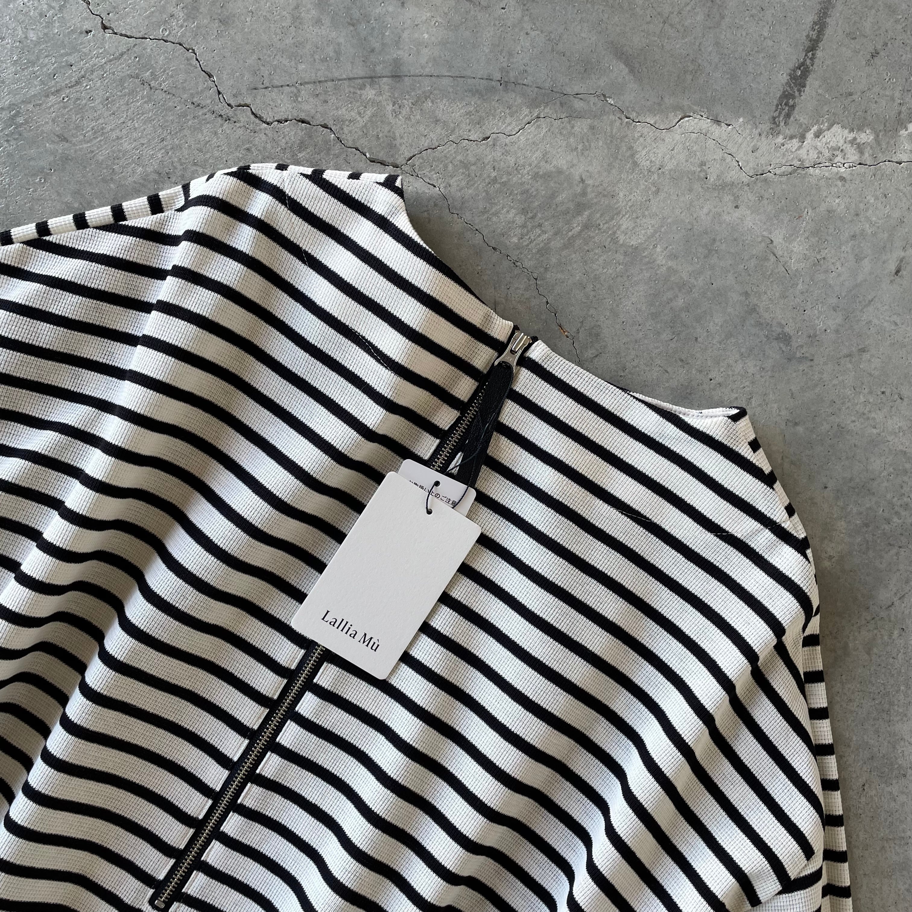 大人気ボーダートップスがまたまた進化⭐︎カジュアルになりがちなボーダーをオトナゆるっとシルエットに♪メッシュヘム ボーダーフレアプルオーバー/Lallia Mu ラリアムー