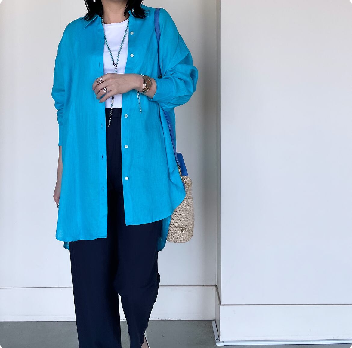 さらっとした肌触りの、ほんのり透け感のあるリネン100%の素材なので、長め丈でも重たく見えないんです◎!